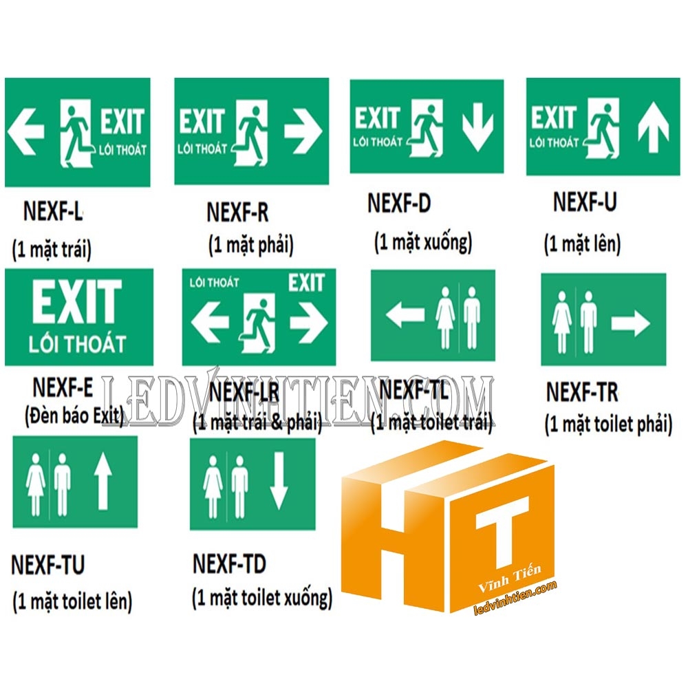 - 1 mặt phải đèn led exit NEXF-R Nanoco dùng chỉ dẫn cửa thoát hiểm (Exit) và đèn Chỉ dẫn nhà vệ sinh. Đèn thường được treo tại các khu vực hành lang, cầu thang hoặc ở chỗ cửa ra vào. Nhằm chỉ lối dẫn đến khu vực Wc của tòa nhà hoặc chỉ hướng thoát nạn khi tòa nhà xảy ra sự cố.