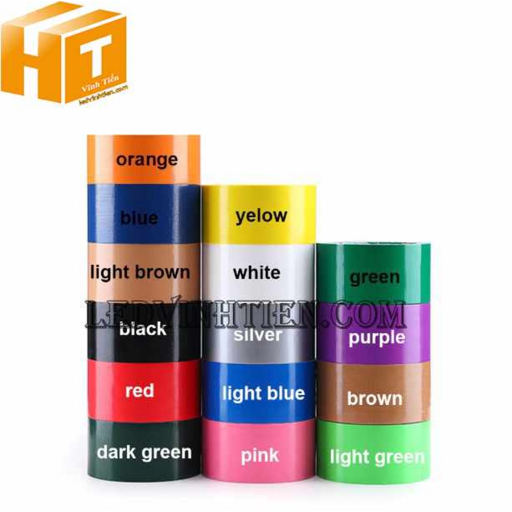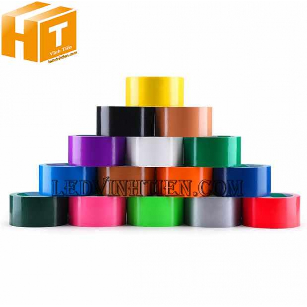 - Băng keo màu 48mm 100Y và 48mm 80Y có các màu sau (vàng, đỏ, cam, xanh lá, xanh dương, đen, hồng, trắng sữa, tím) Cuộn 12,700