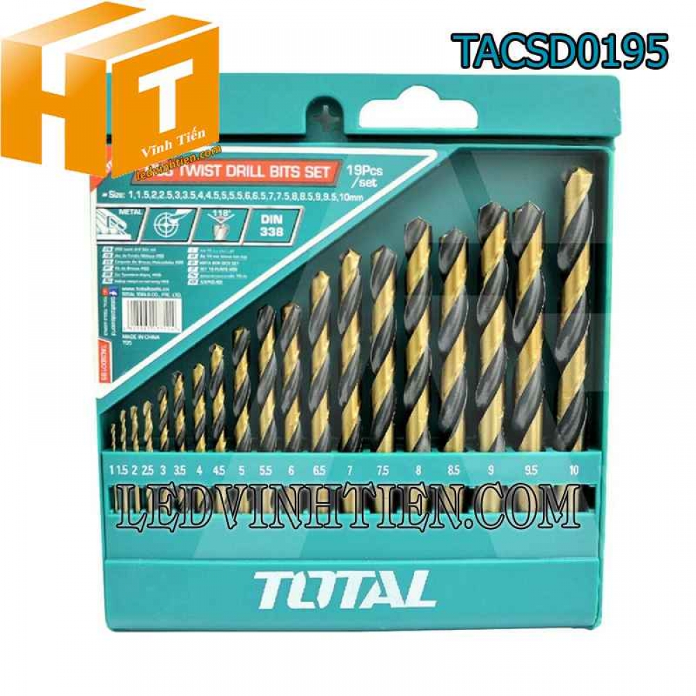 Đóng gói bao gồm: x 1 Bộ 19 mũi khoan kim loại Total TACSD0195
