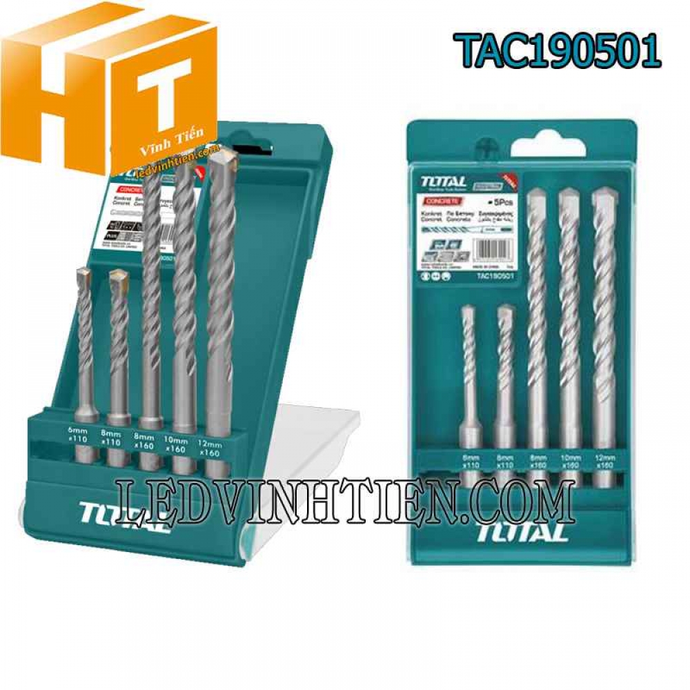 - Tên sản phẩm: Bộ 5 mũi khoan bê tông TAC190501 Total