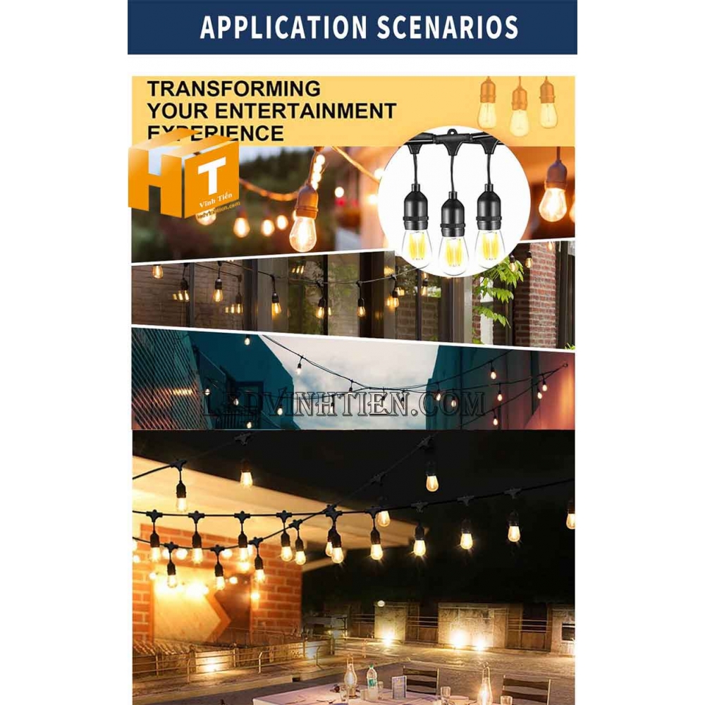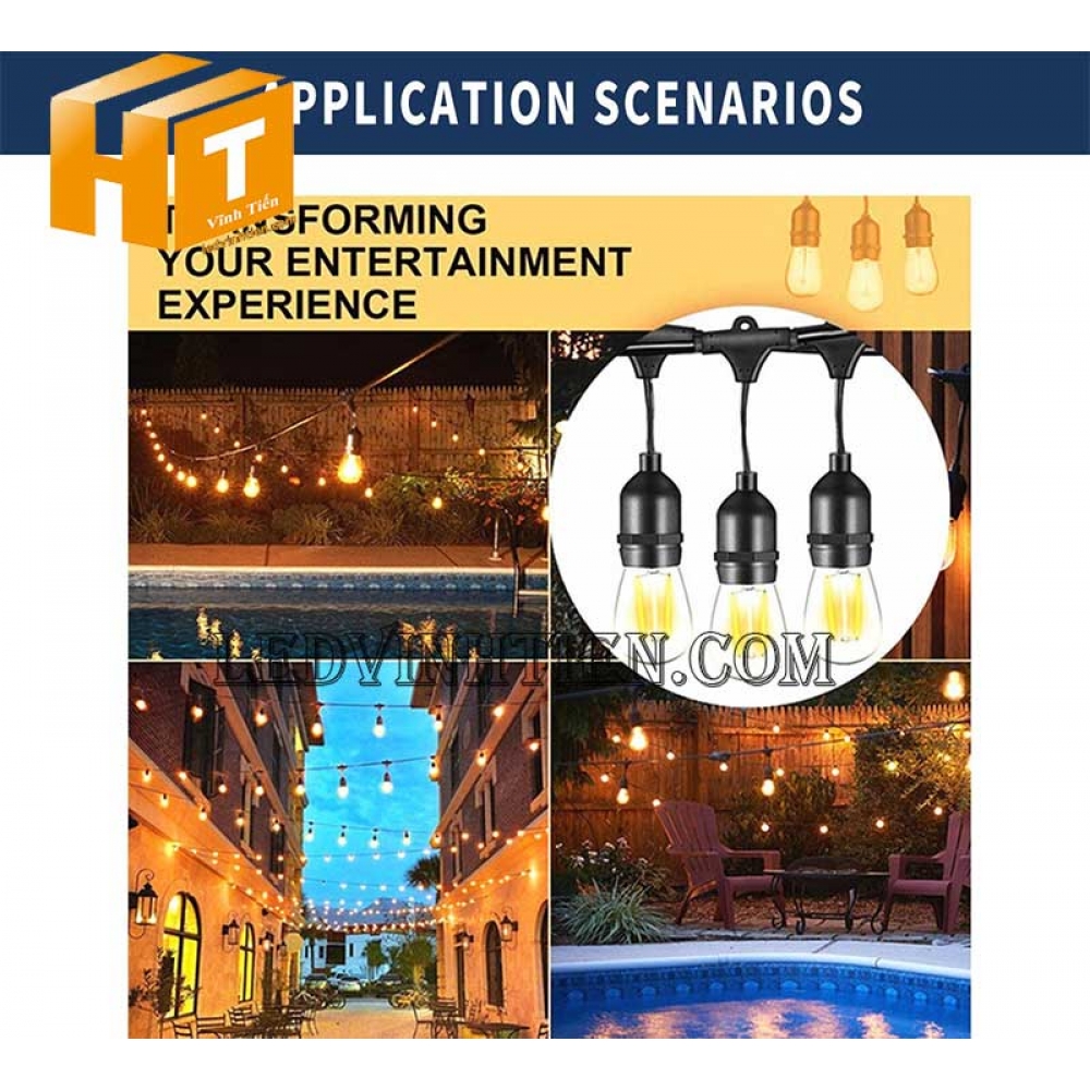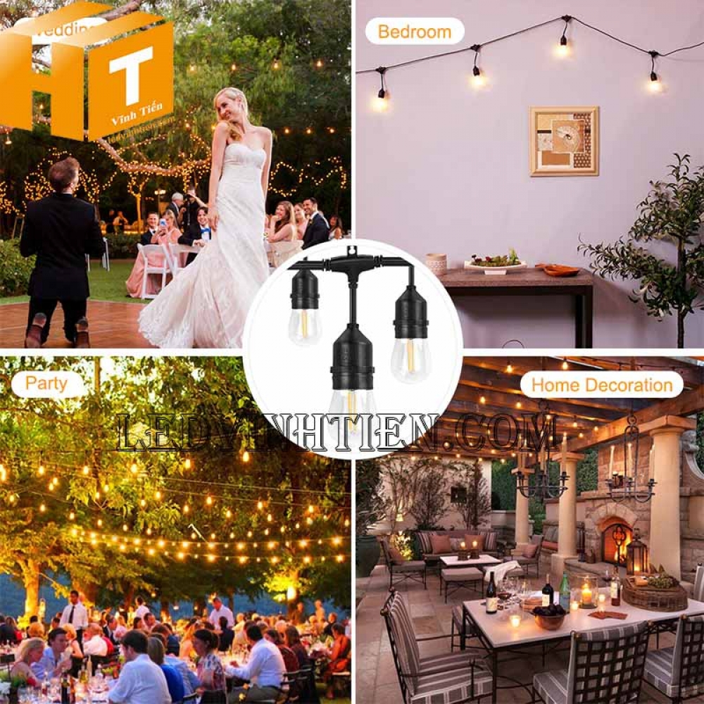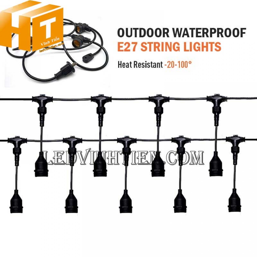Hình ảnh các sản phẩm dây đèn trang trí ngoài trời chống nước dùng cho bóng đèn tròn, bóng edison, bóng led búp