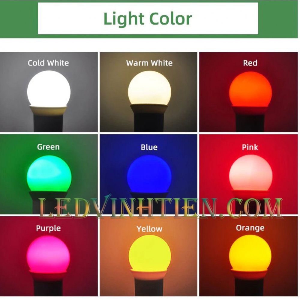 - Màu LED: Trắng, trắng ấm, nhiều màu, xanh lá, hồng, tím xanh dương, đỏ, vàng, orange