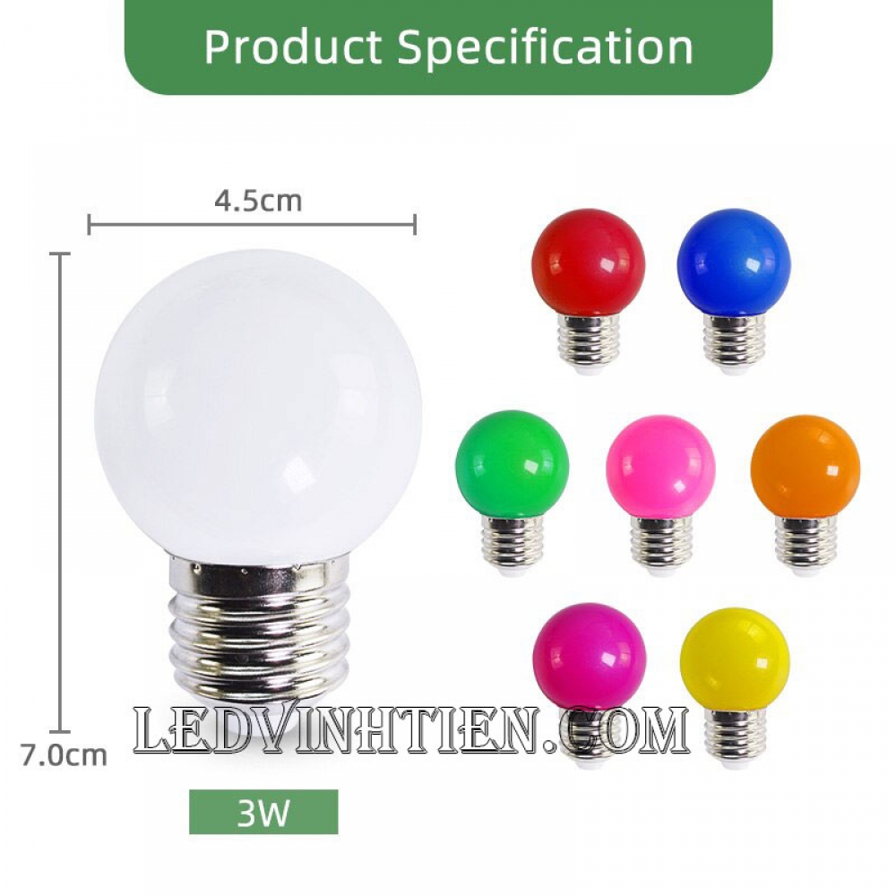 Thông số kỹ thuật Bóng đèn led trái chanh 3W RGB loại tốt, giá rẻ, chiếu sáng ngoài trời