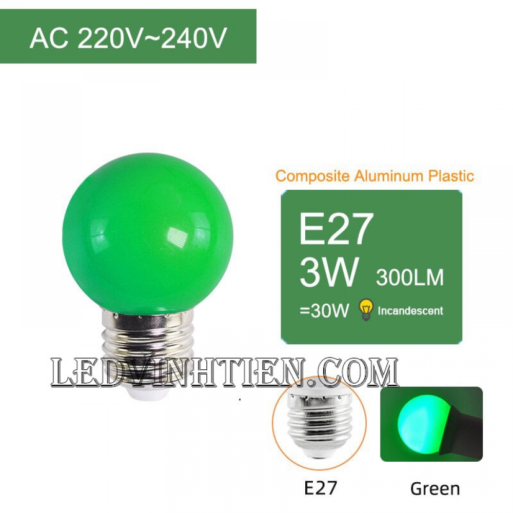 Thông số kỹ thuật Bóng đèn led trái chanh 3W xanh lá loại tốt, giá rẻ, chiếu sáng ngoài trời
