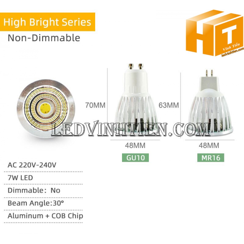 - Mã SP : Bóng chén led 7W đui MR16, GU10, GU5.3, E14, E27