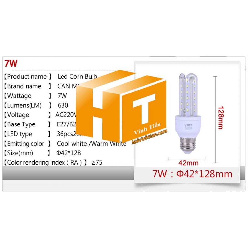 Hình ảnh chi tiết của bóng đèn u led 7W loại tốt, giá rẻ, chất lượng, siêu sáng, chính hãng ledvinhtien.com