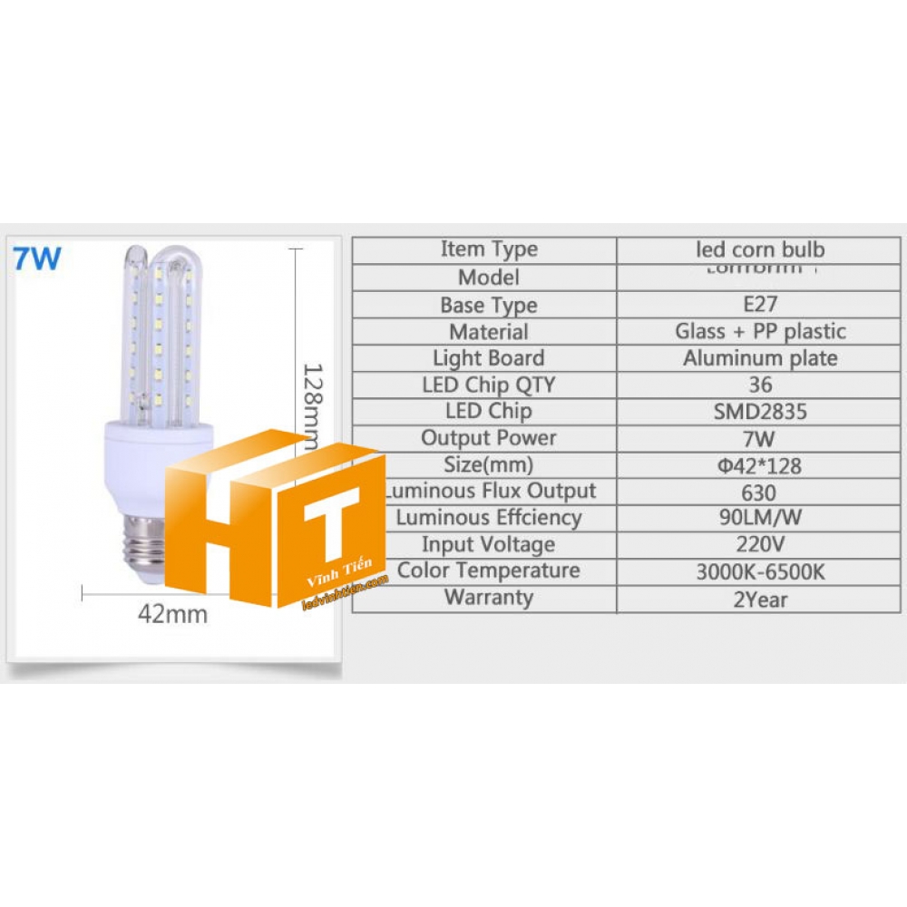 Thông số kỹ thuật Bóng đèn U led 7W loại tốt, giá rẻ, chất lượng, siêu sáng