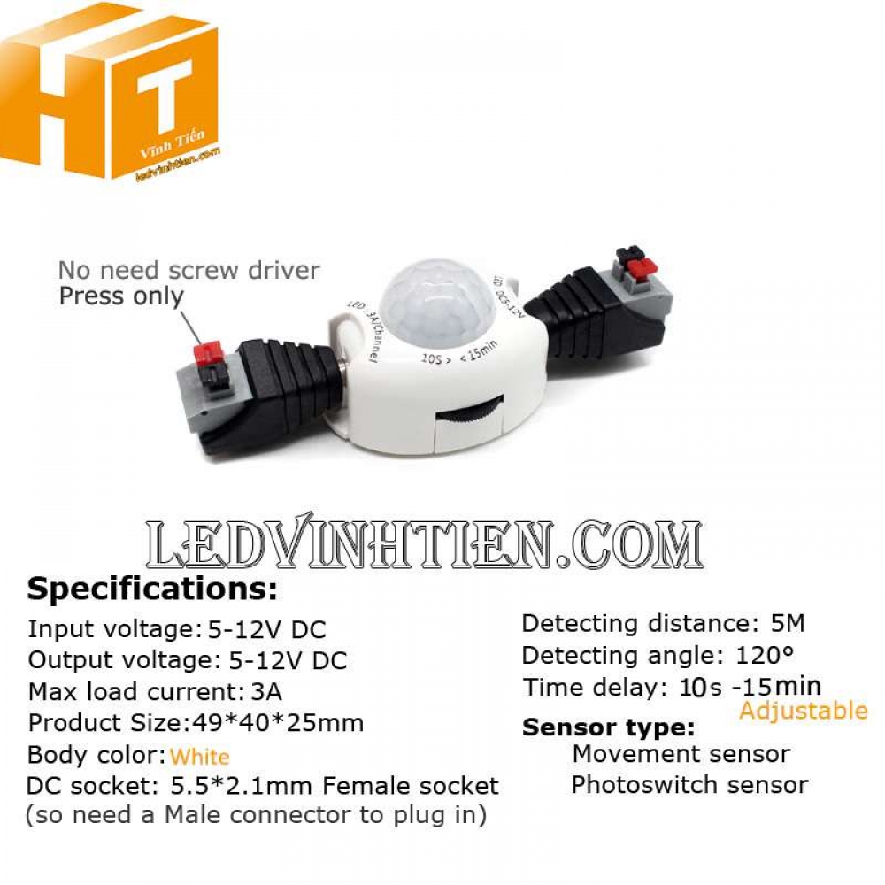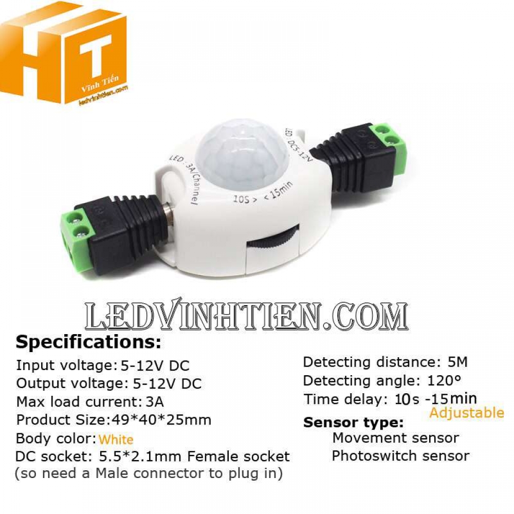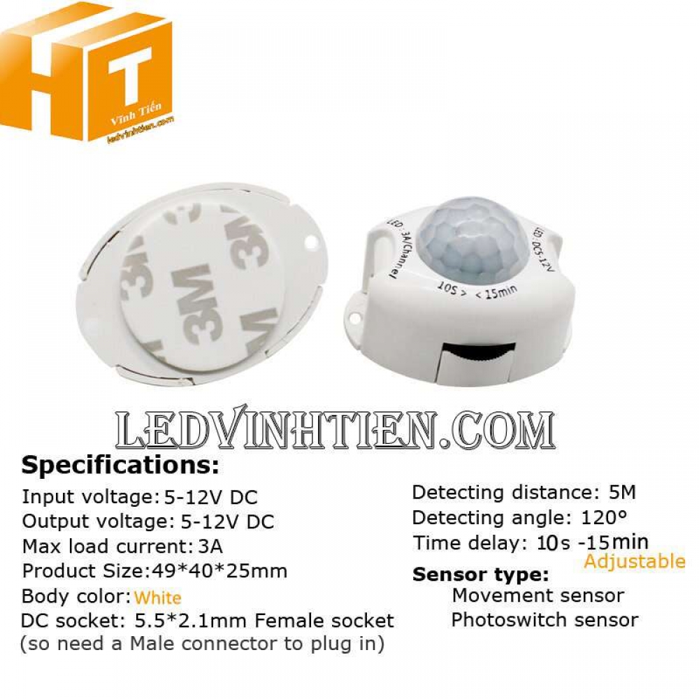 Công tắc cảm biến chuyển động hồng ngoại dùng được cho led dây dán và led thanh nhôm 12v