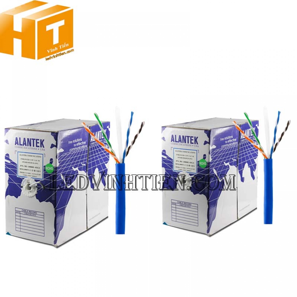 - Cáp mạng Alantek CAT5E Twisted Pair Cable được thiết kế để hỗ trợ các ứng dụng băng thông cao lên tới 1 Gigabit Ethernet. Cáp gồm 24 dây dẫn bằng đồng rắn trần AWG cách nhiệt với mật độ cao Polyethylene (HDPE) cách điện. Đối với cáp không được che chở, các dây dẫn cách điện được xoắn thành từng cặp và hoàn chỉnh với một áo khoác ngoài.