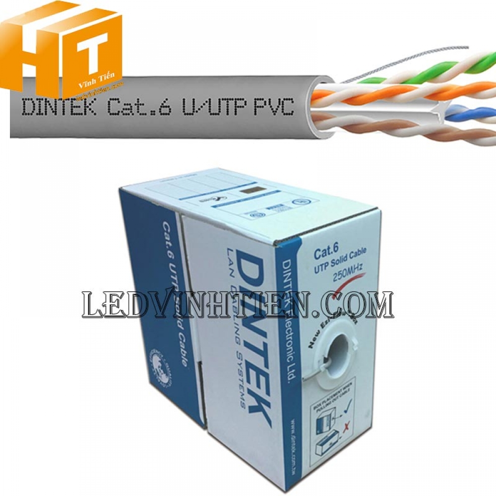 - Dây cáp mạng Dintek Cat.6 UTP đồng nguyên chất 100%, thương hiệu Đài Loan, chất lượng tốt, độ dài cuộn 305m. Chuyên dùng cho camera IP.