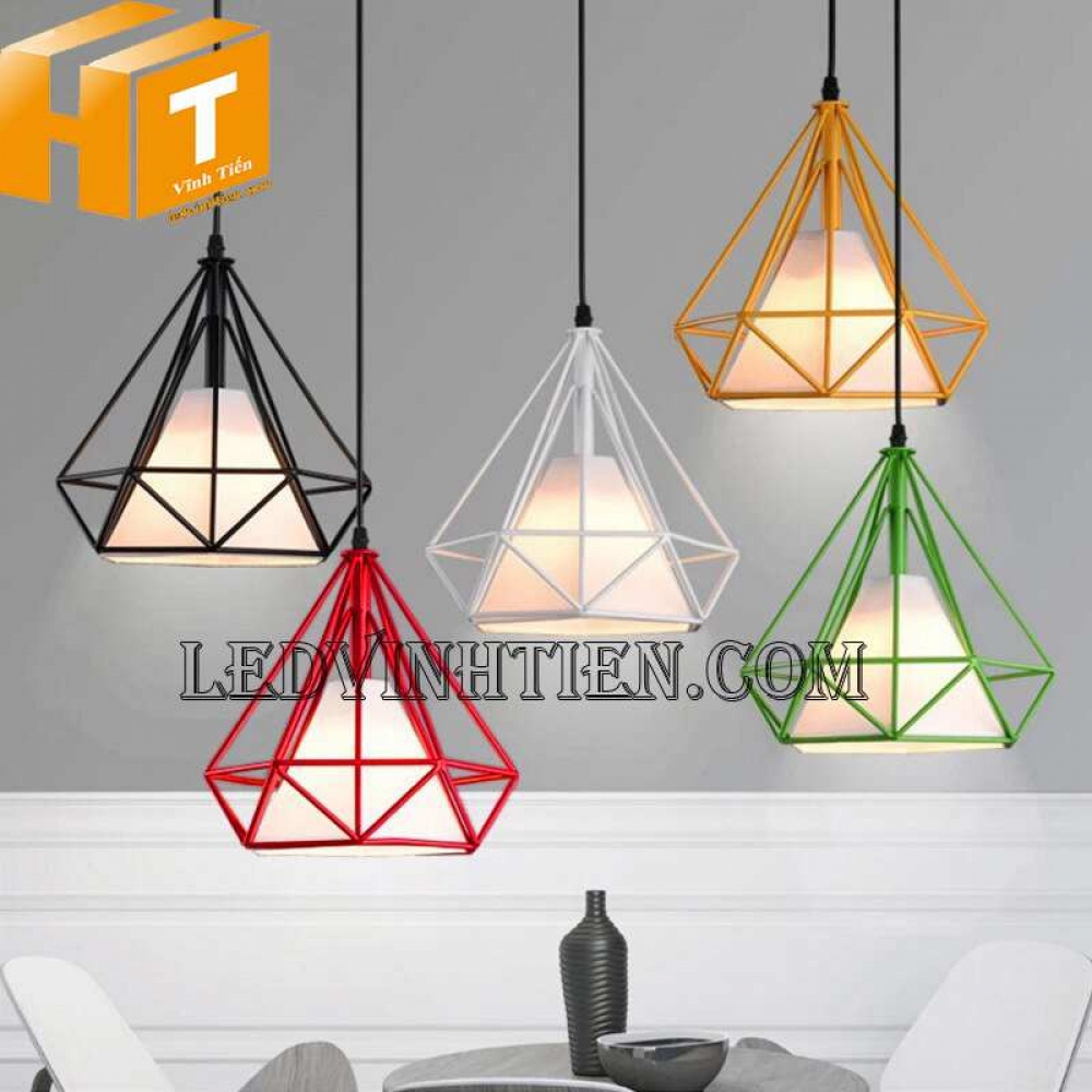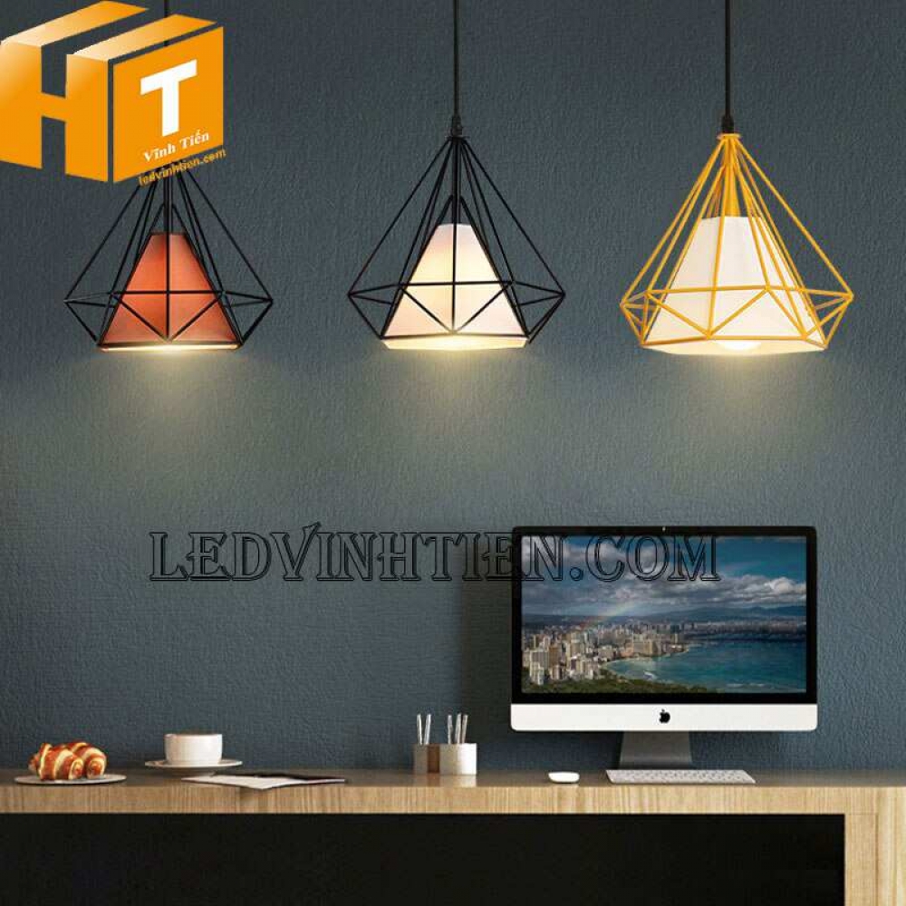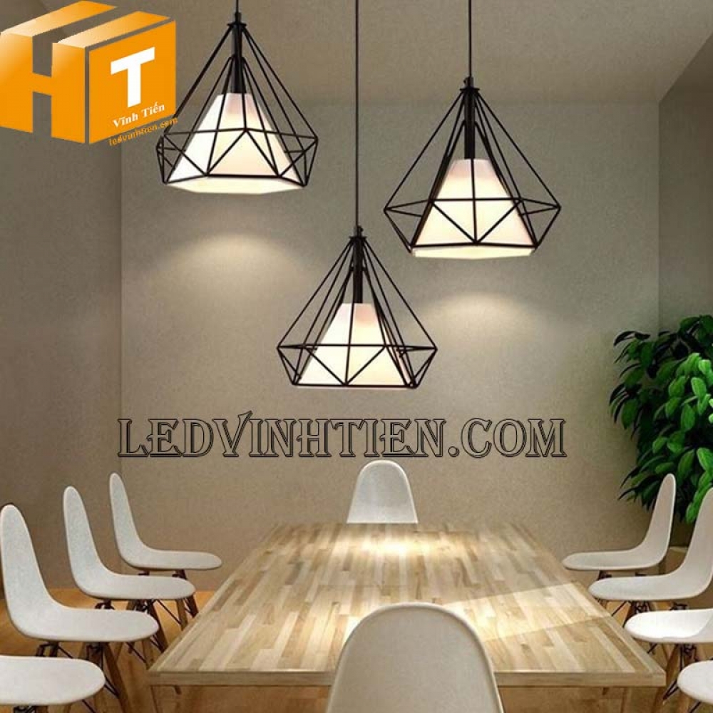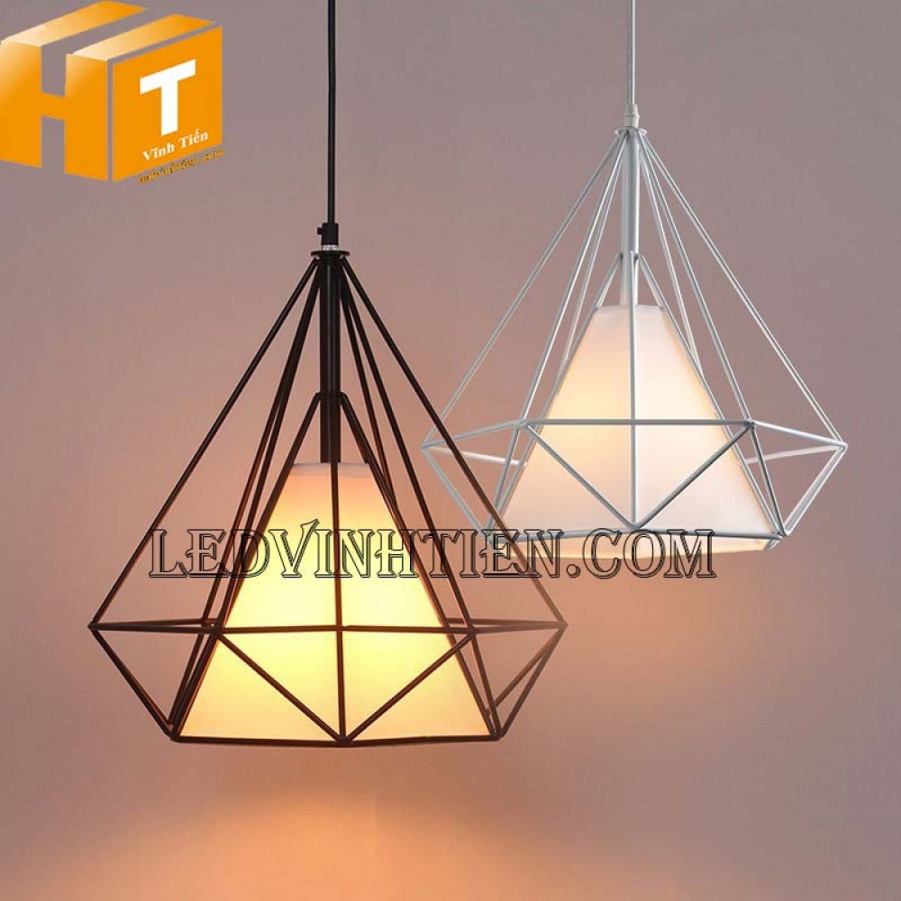 - Đèn thả trần kim cương là 1 dạng đèn thả lồng sắt, với kiểu dáng thả trần kết hợp với các loại bong led như bóng Edison, bóng búp phù hợp với không gian cổ điển và sang trọng như Quán Cafe, Bar, nhà hàng, quầy bar, khách sạn, phòng ăn hay các cửa hàng trưng bày…