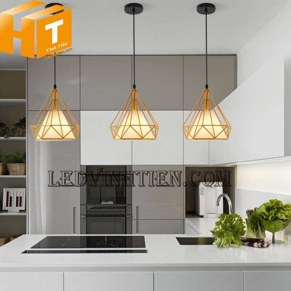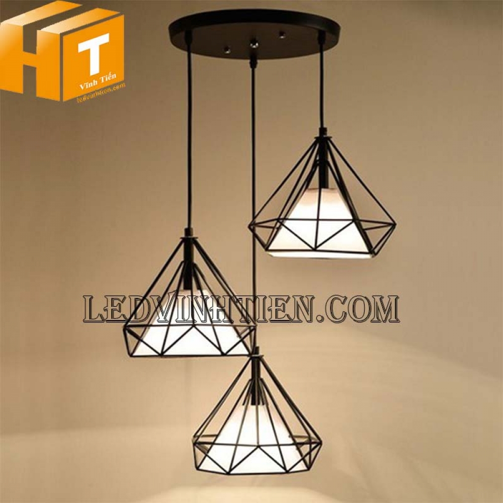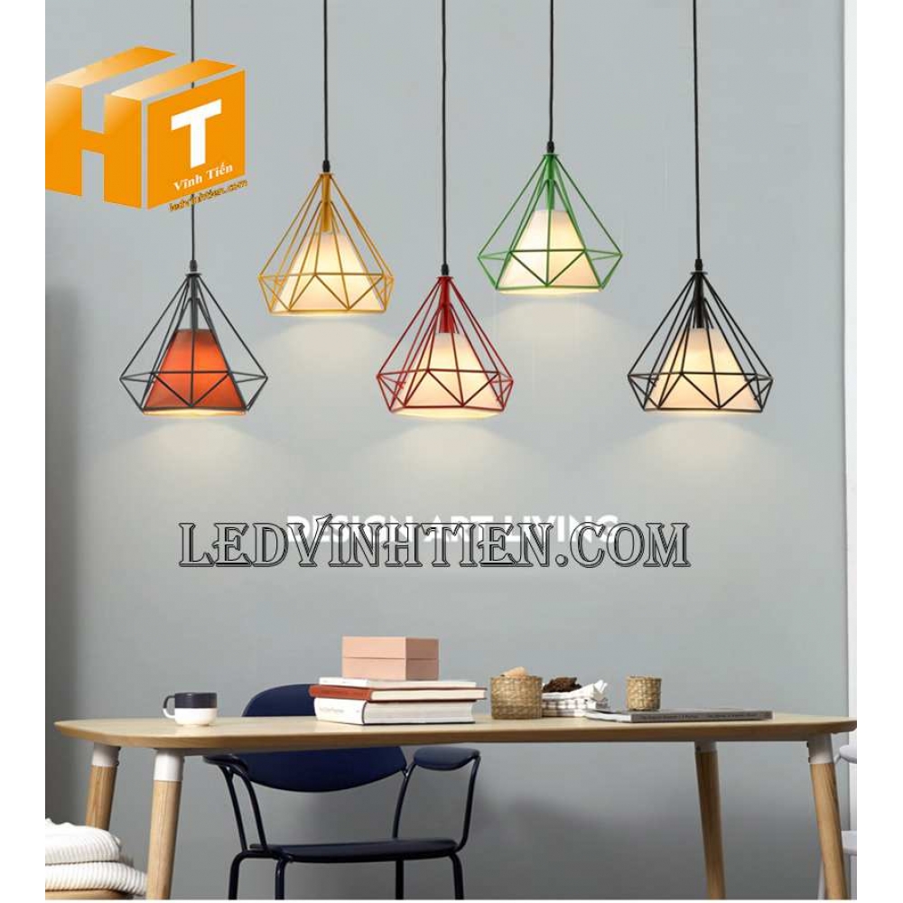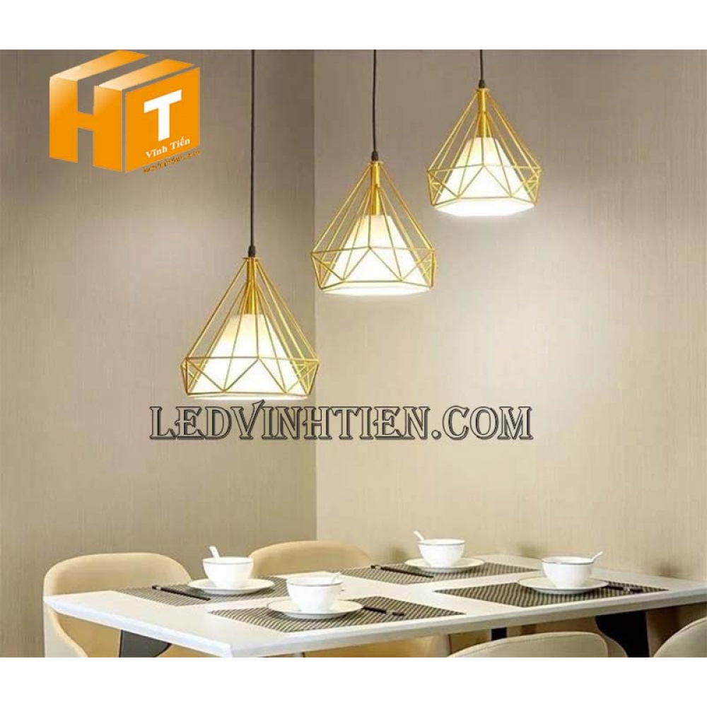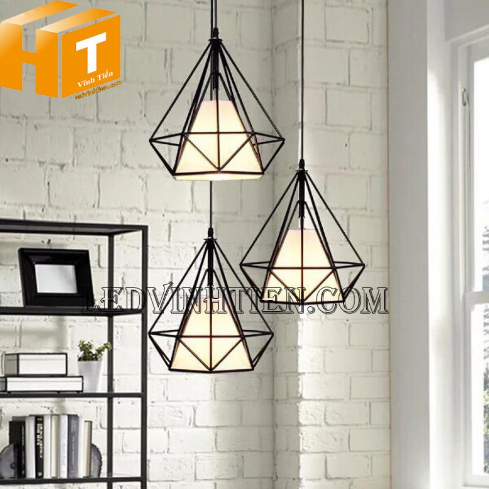 - Đèn thả trần kim cương là 1 dạng đèn thả lồng sắt, với kiểu dáng thả trần kết hợp với các loại bong led như bóng Edison, bóng búp phù hợp với không gian cổ điển và sang trọng như Quán Cafe, Bar, nhà hàng, quầy bar, khách sạn, phòng ăn hay các cửa hàng trưng bày…