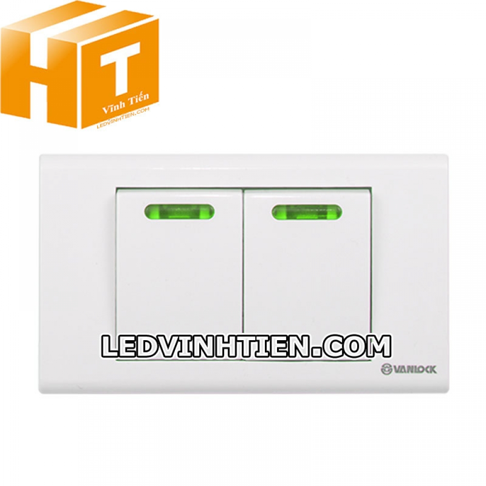 công tắc đôi 1 chiều đèn xanh Sino Vanlock
