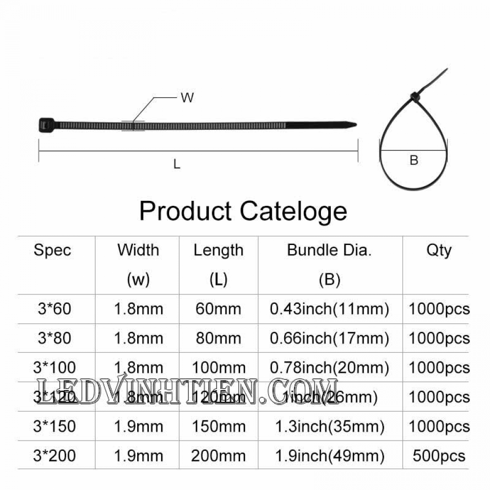 - 3x150:Chiều rộng 2.5mm, Dài 150mm, 100 cái/gói