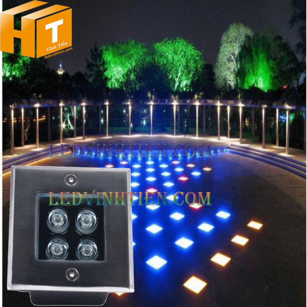 Ứng dụng đèn led ngầm 4W vuông ánh sáng xanh dương dùng chiếu sáng cảnh quan chính hãng Ledvinhtien.com