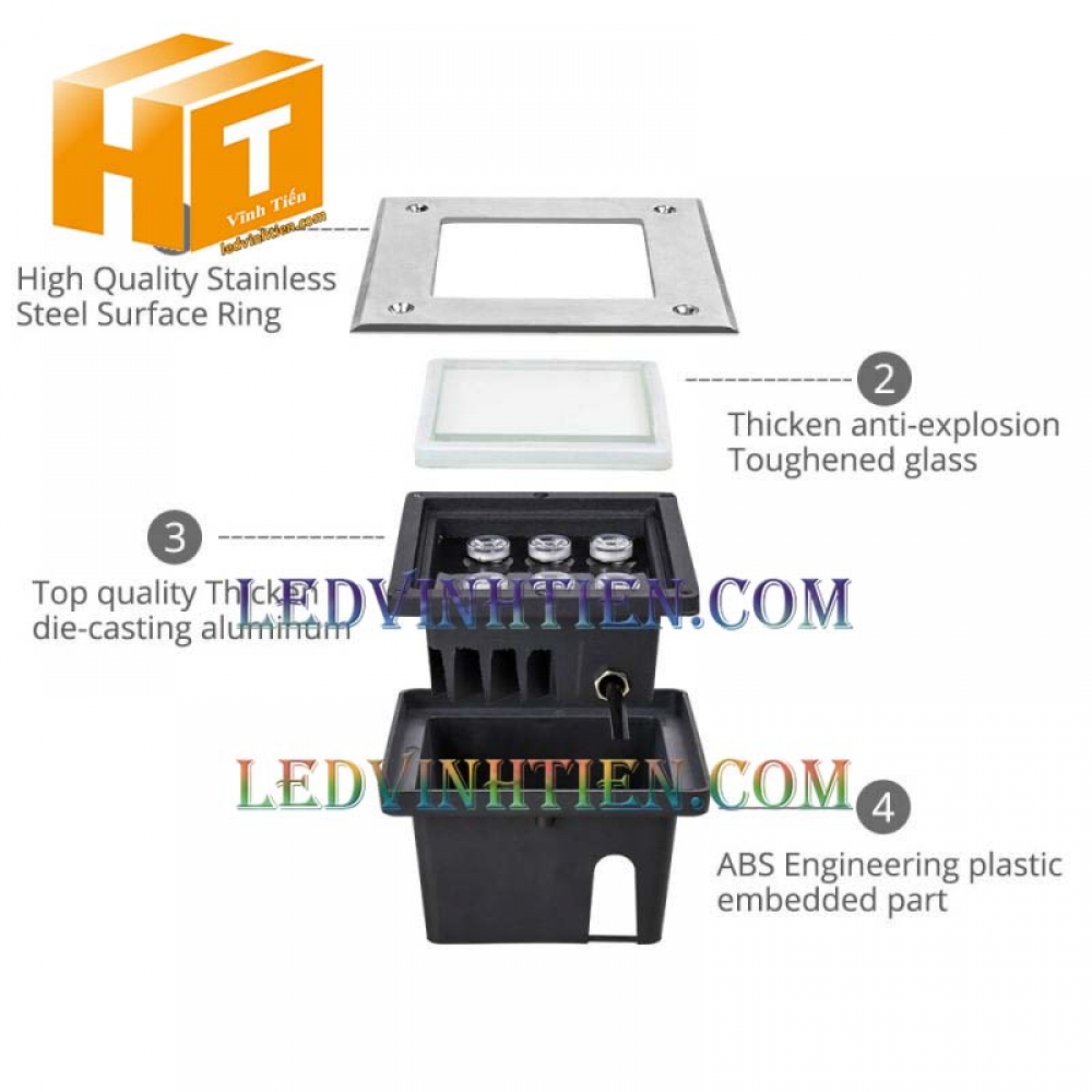 Hình ảnh chi tiết đèn led âm đất, âm sàn, đèn ngầm dùng chiếu sáng cảnh quan ngoài trời loại tốt, giá rẻ, chất lượng, cao cấp