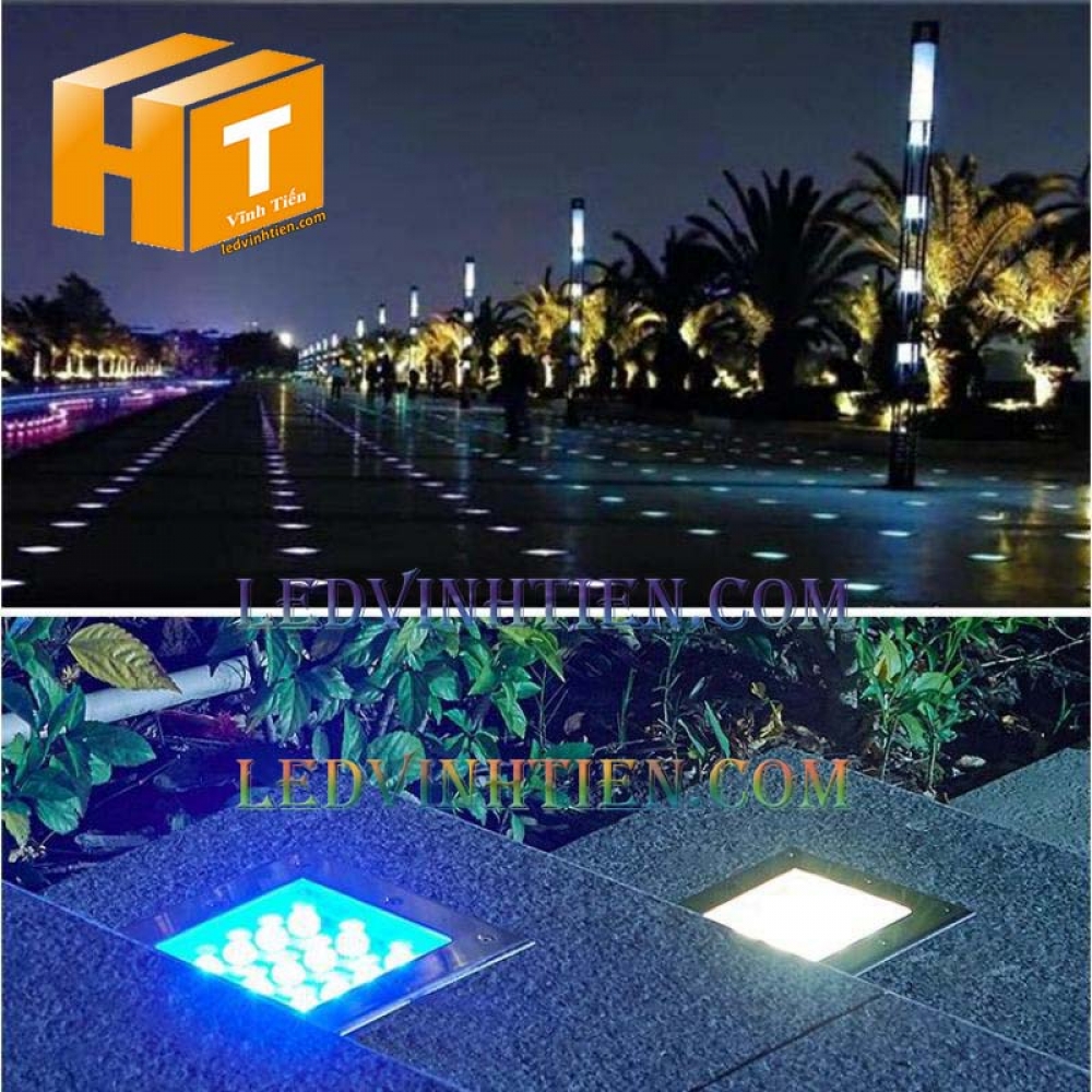 Ứng dụng đèn led ngầm 6W vuông ánh sáng xanh dương dùng chiếu sáng cảnh quan chính hãng Ledvinhtien.com