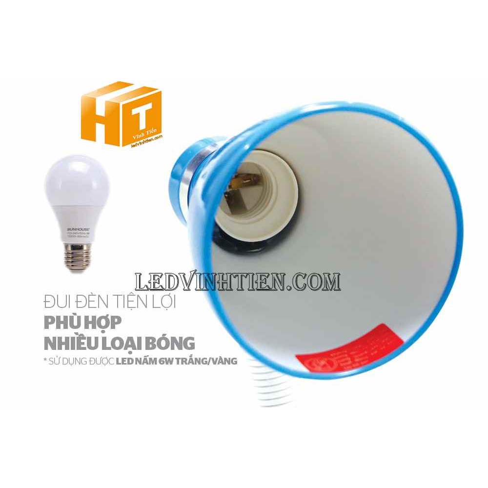 - Có thể dùng được với nhiều loại bóng như bóng đèn LED, sợi đốt, compact, cho bạn thêm nhiều lựa chọn khi có nhu cầu thay bóng.