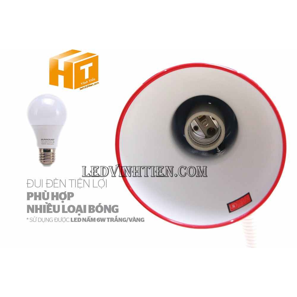 - Có thể dùng được với nhiều loại bóng như bóng đèn LED, sợi đốt, compact, cho bạn thêm nhiều lựa chọn khi có nhu cầu thay bóng.