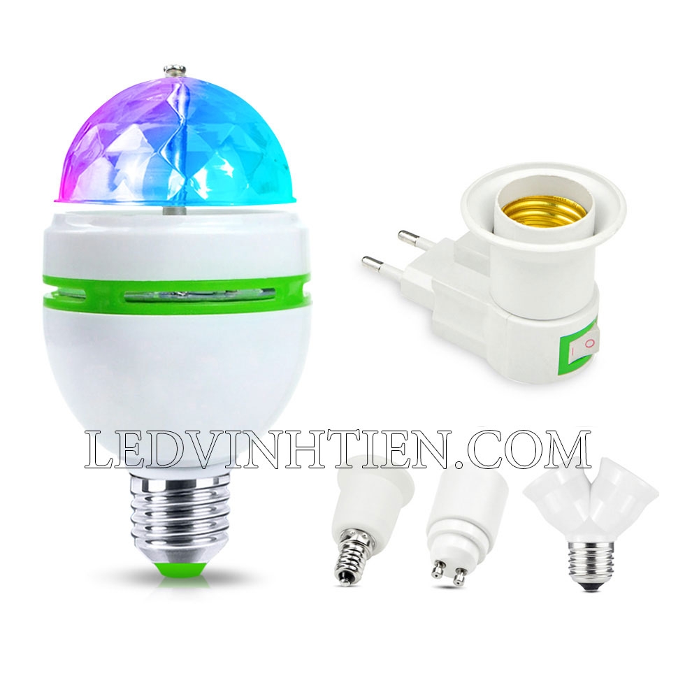 Đặc trưng đèn cầu xoay 3W đuôi vặn loại tốt, giá rẻ, nháy theo nhạc