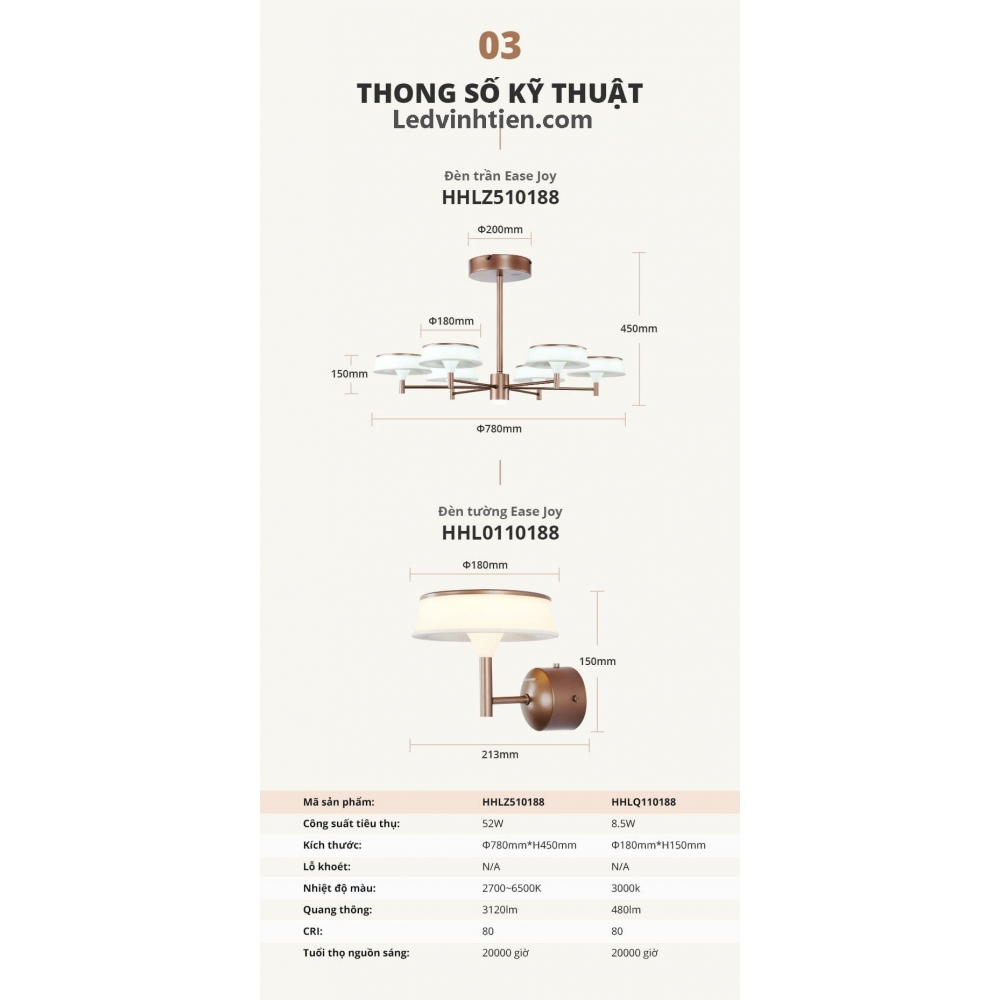 Thông số kỹ thuật của đèn led Ease Joy HHLZ510188 loại tốt, chính hãng Panasonic, chiết khấu cao: