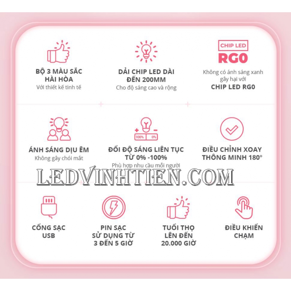 - Hỗ trợ ánh sáng tối đa giúp bạn nhìn rõ mọi vật cảnh xung quanh và chữ nghĩa sách vở thật rõ nét