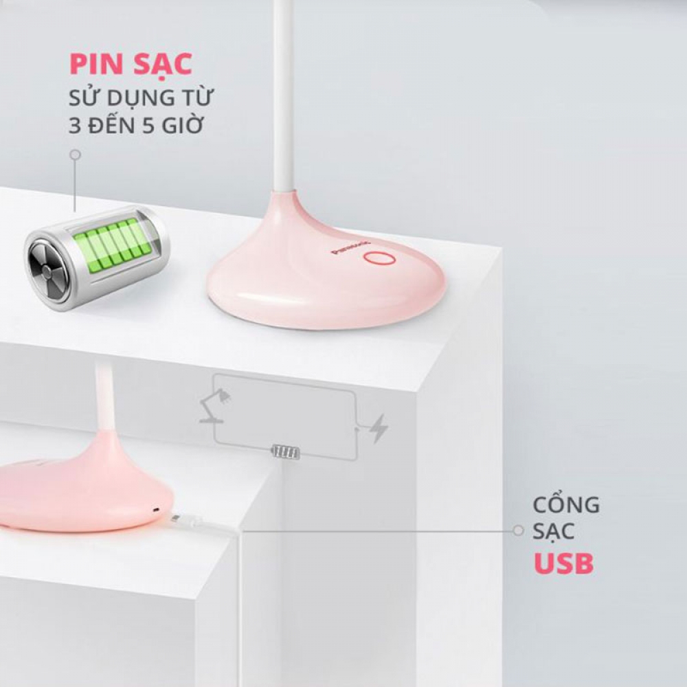 Đèn sạc để bàn LED Panasonic HH-LT0220P19 (Trắng)/ HH-LT0222P19 (Hồng)/ HH-LT0221P19 (Đen) có thể xoay đèn nhiều vị trí khác nhau, góc phát sáng rộng, thích hợp làm đèn học cho trẻ em, cho sinh viên, dùng để đọc sách, làm việc buổi tối của giới văn phòng.