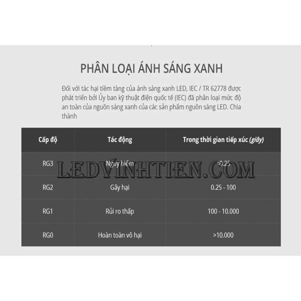 - Sử dụng CHIP LED RGO - Không chứa ánh sáng xanh gây hại.