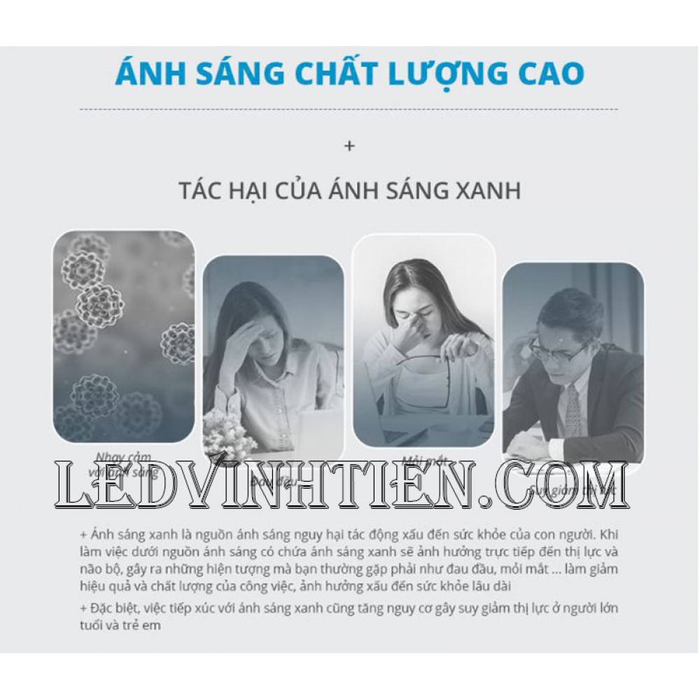 - Sử dụng CHIP LED RGO - Không chứa ánh sáng xanh gây hại.