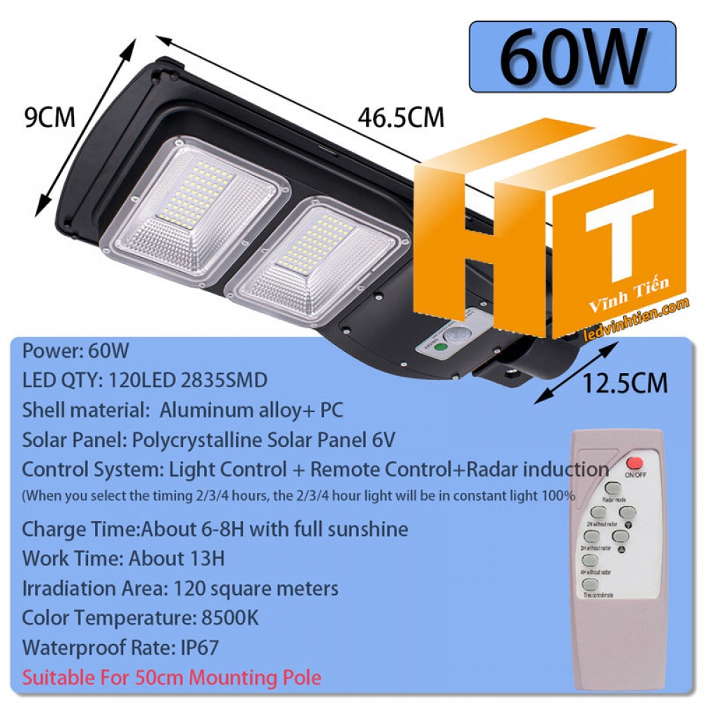 - Tên sản phẩm: Đèn đường led năng lượng mặt trời 60W