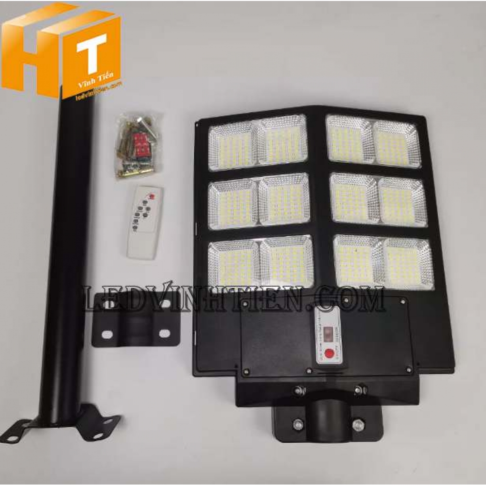 Bộ sản phẩm bao gồm, 1 đèn đường 300W, 400W, 500W (tuỳ khách chọn công suất) trụ đèn dài tầm 50cm, ốc nở, Remote, pin remote, sách hướng dẫn sử dụng và các phụ kiện khác