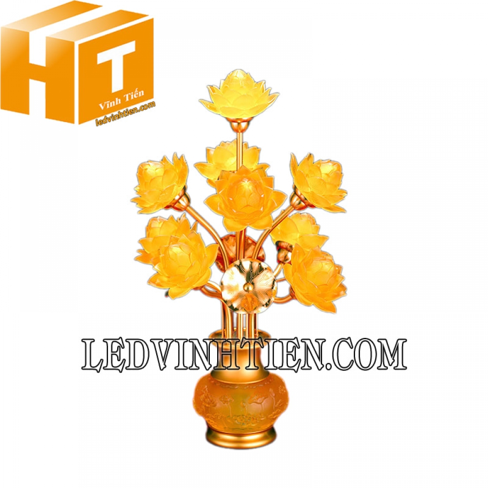 Hình ảnh đèn hoa sen 9 bông màu vàng tại Ledvinhtien.com