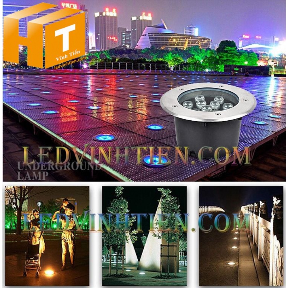 Ứng dụng đèn led âm đất 12W ánh sáng 7 màu dùng chiếu sáng cảnh quan chính hãng Ledvinhtien.com