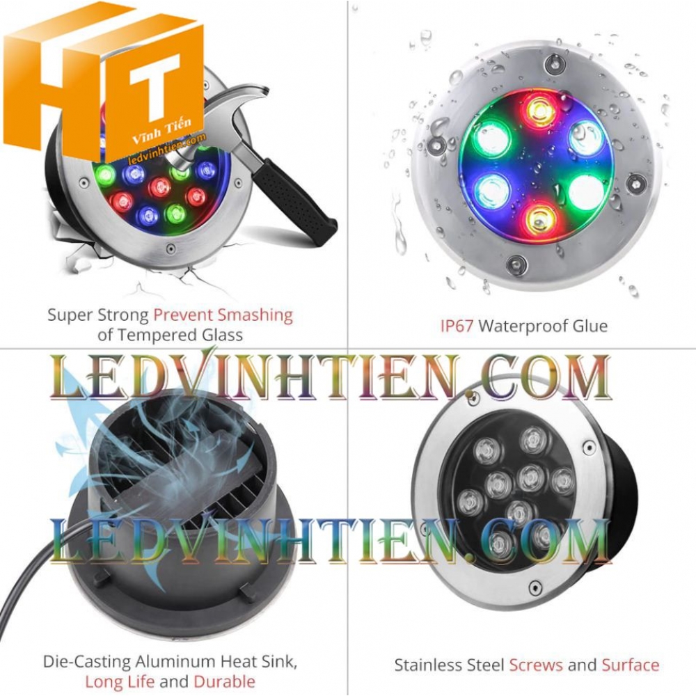 - Tên sản phẩm: Đèn led âm đất 12W ánh sáng RGB