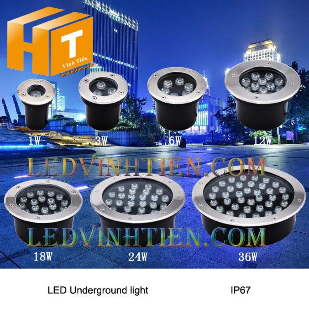 - Đa dạng về công suất 1W / 3W / 5W / 6W / 7W / 9W / 12W / 15W / 18W / 24W / 27W/ 36W... cho nên đèn led âm đất được dùng nhiều để chiếu sáng ngoài trời, sân vườn, tầng trệt, đường đi, Tầng ngầm,...