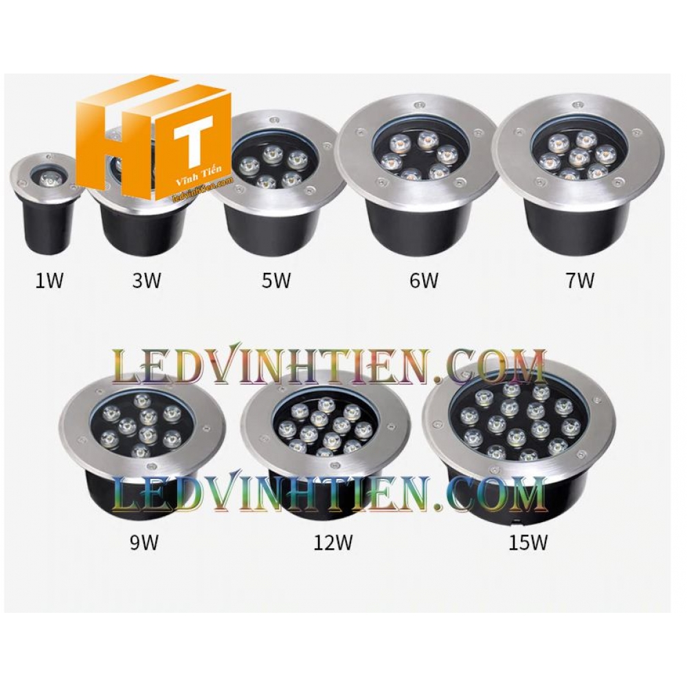 - Đa dạng về công suất 1W / 3W / 5W / 6W / 7W / 9W / 12W / 15W / 18W / 24W / 27W/ 36W... cho nên đèn led âm đất được dùng nhiều để chiếu sáng ngoài trời, sân vườn, tầng trệt, đường đi, Tầng ngầm,...