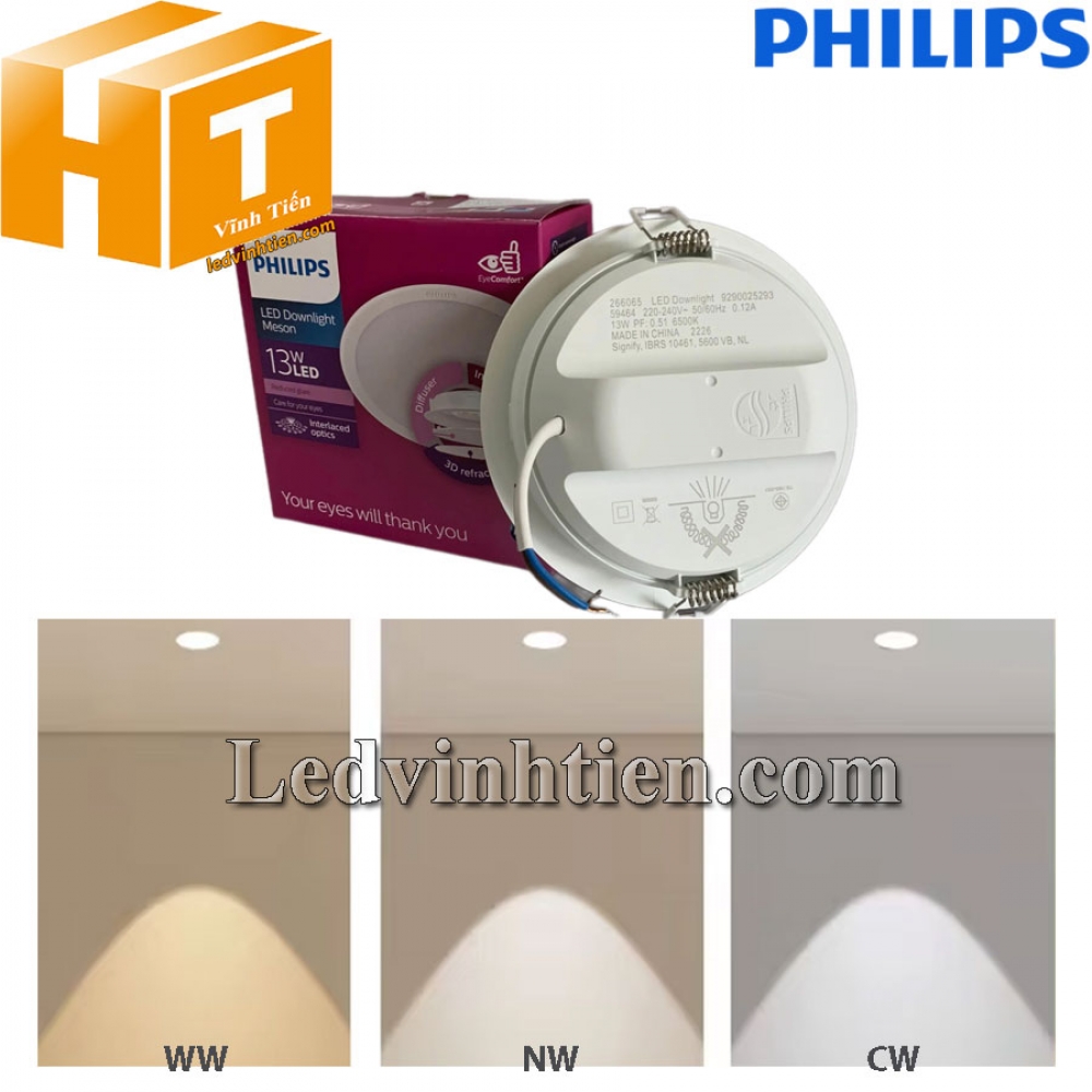 Có 2 mẩu đèn âm trần tròn 3 màu 13W Meson của Philips đó là loại tròn và vuông, gắn âm trần