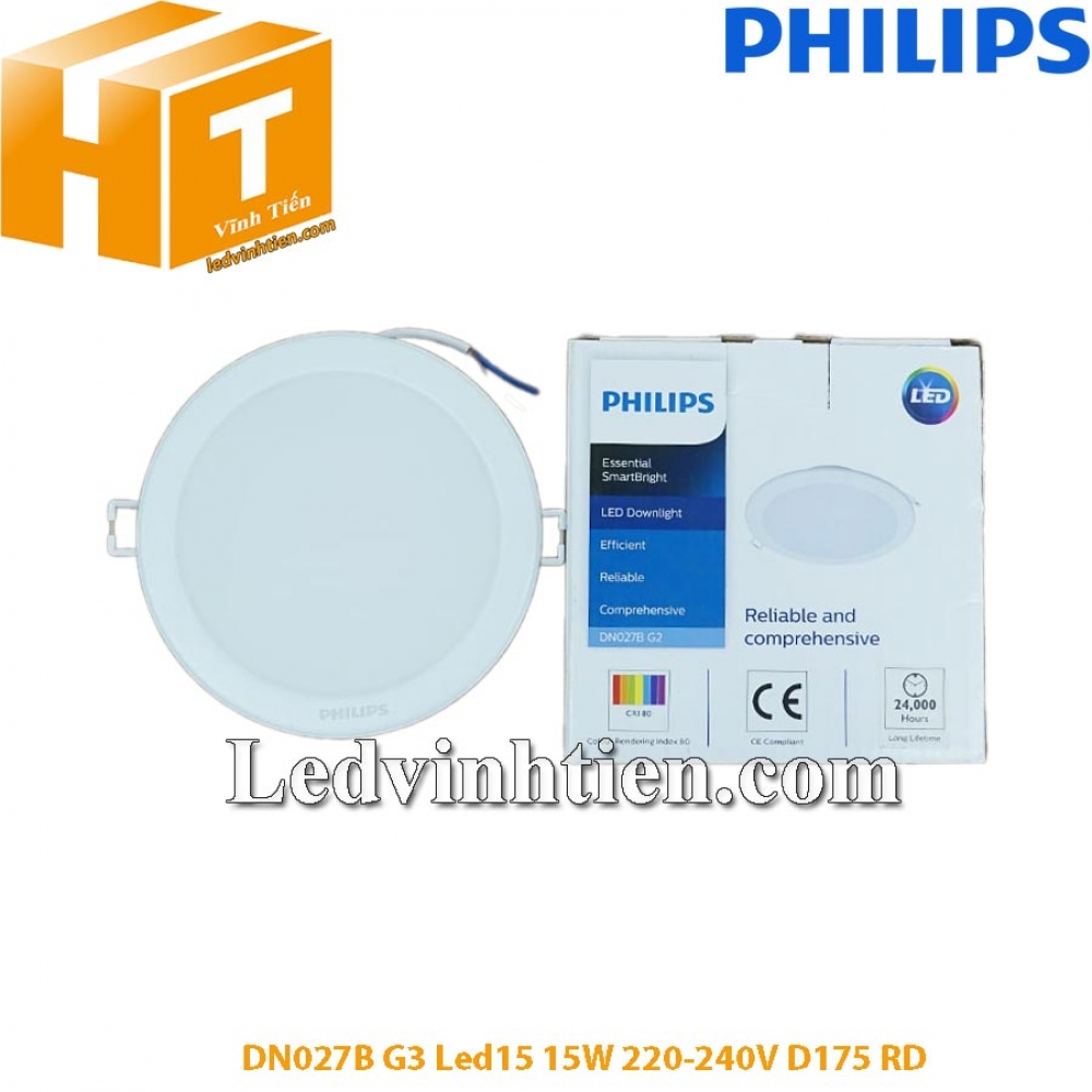 - Tên sản phẩm: Đèn led downlight âm trần tròn DN027B G3 Led15 15W 220-240V D175 RD Philips