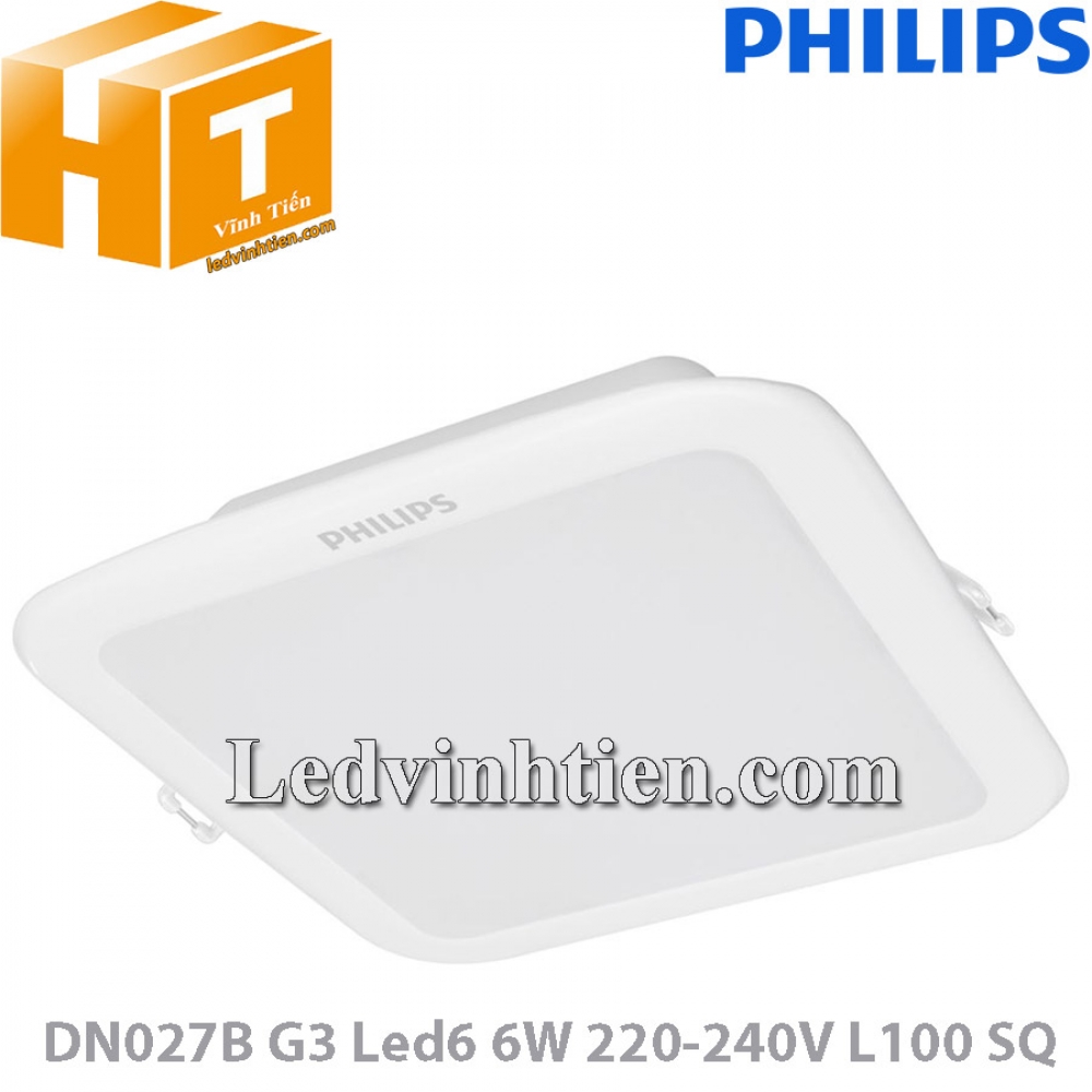 Mô tả đèn led downlight âm trần vuông 9W DN027B G3 Led6 L100 SQ chính hãng Philips