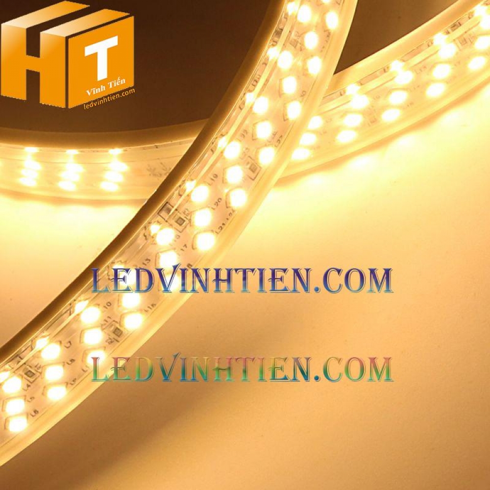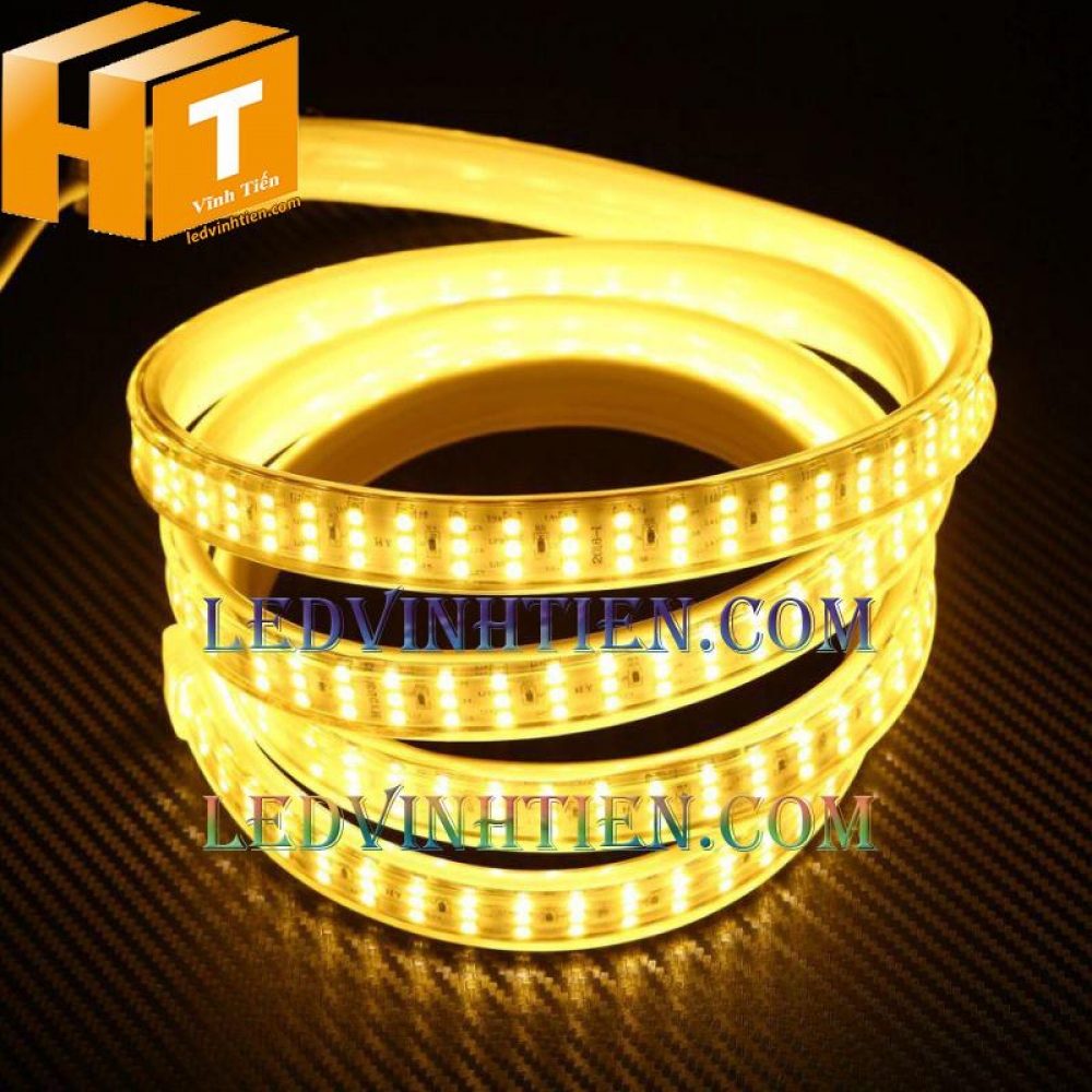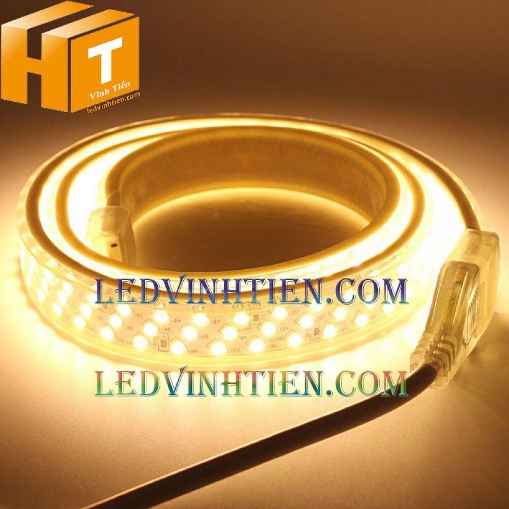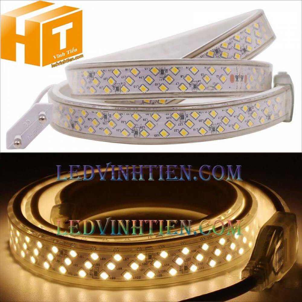 Mô tả đèn led dây 2835 220v ba hàng led màu vàng loại tốt, giá rẻ, chiết khấu cao
