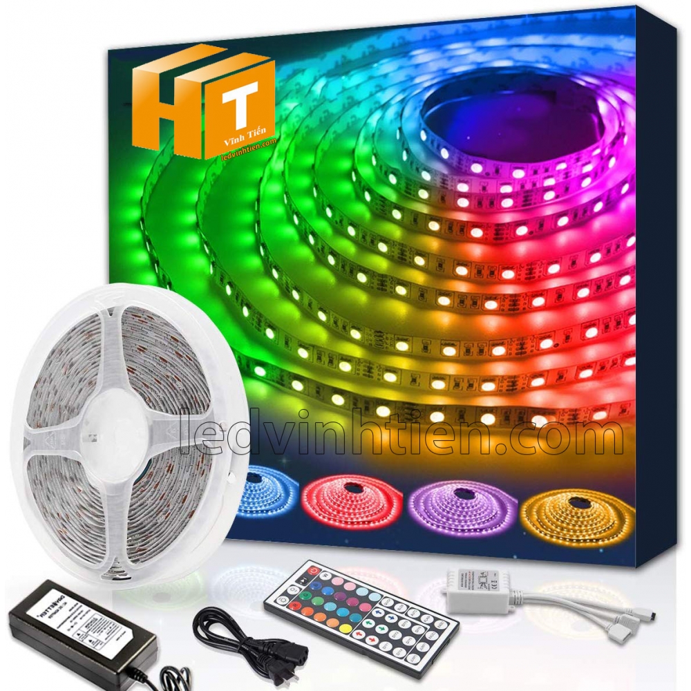 Đóng gói bao gồm: 5 Mét/Cuộn màu BẢY MÀU, RGB chíp led SMD 5054 (không bán lẻ từng mét, chỉ bán nguyên cuộn 5m)