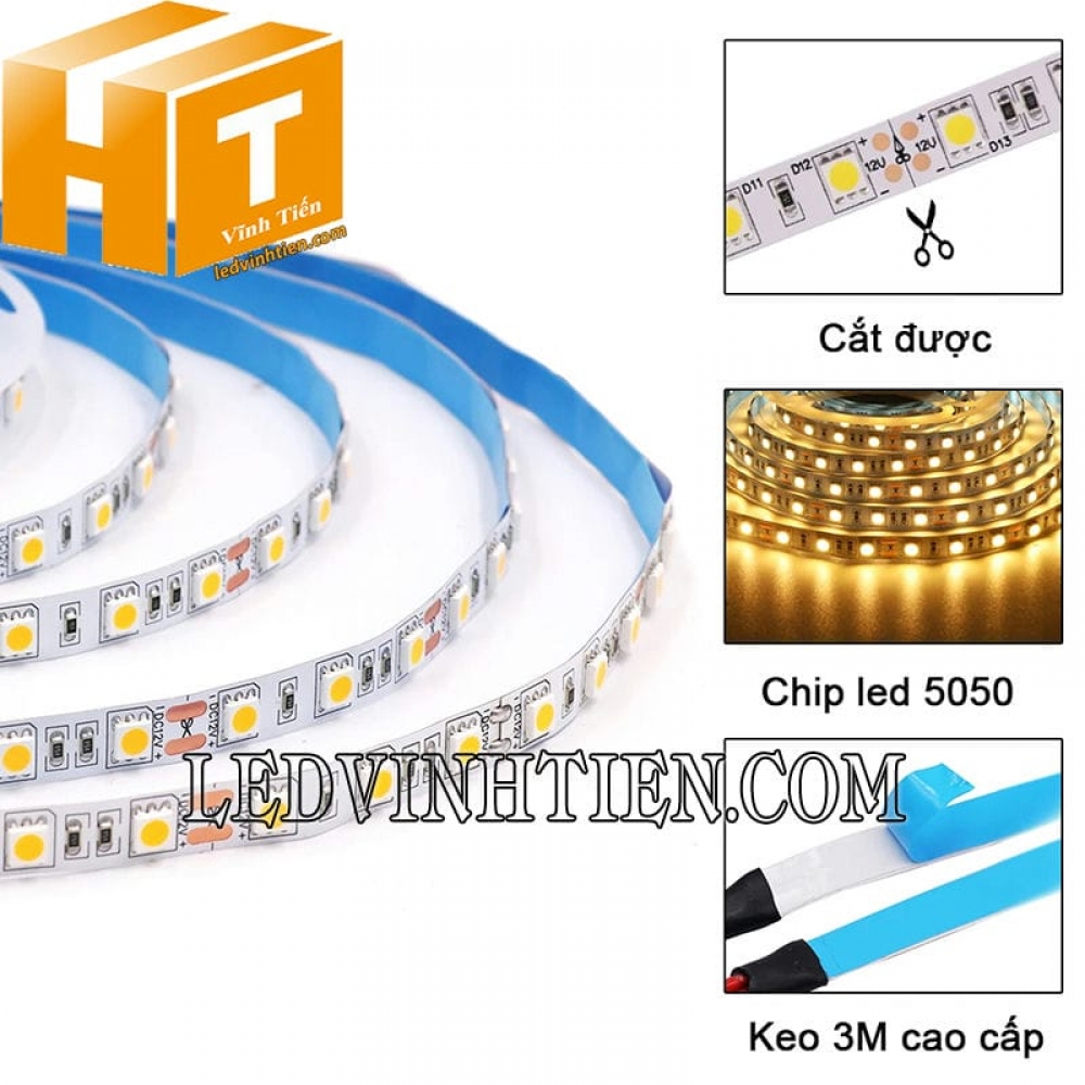 Mô tả đèn led dây 5050 12V ánh sáng vàng nắng loại tốt, giá rẻ