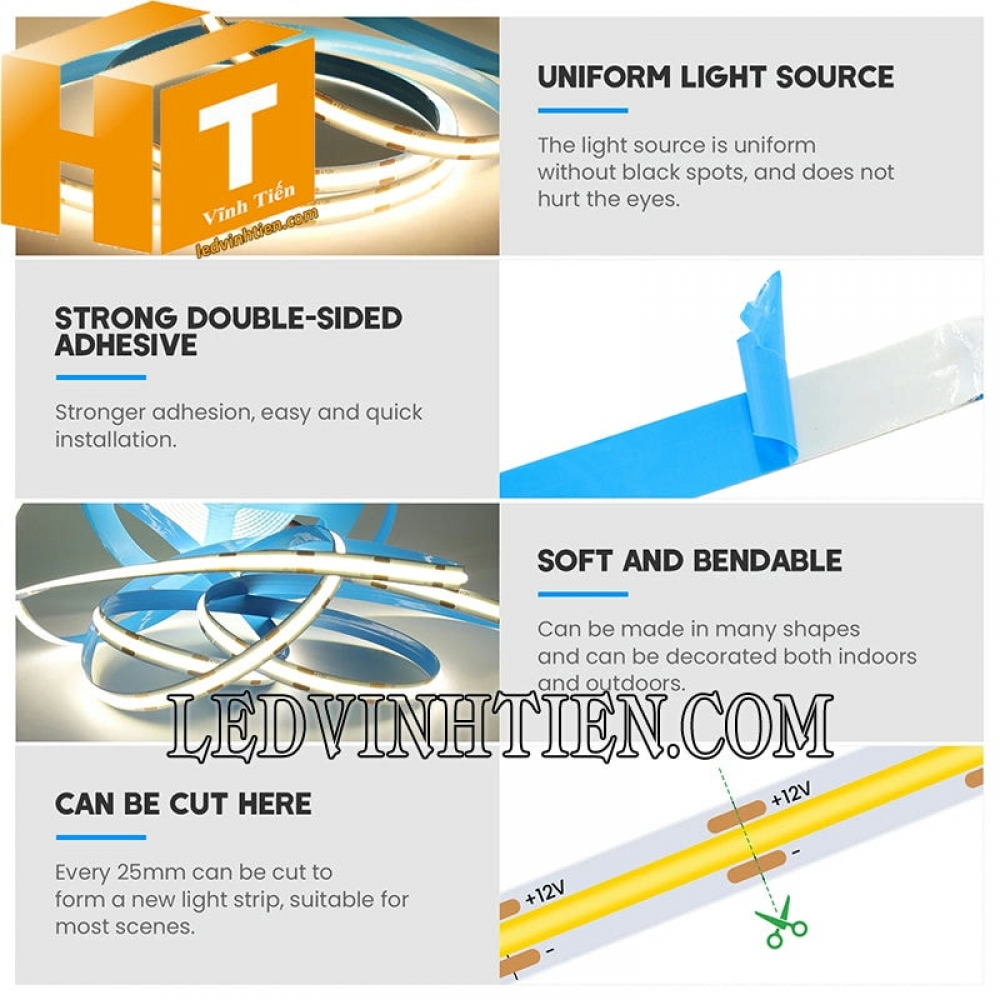- Có điểm đánh dấu để cắt led ở mỗi đoạn khoảng 2.5cm.