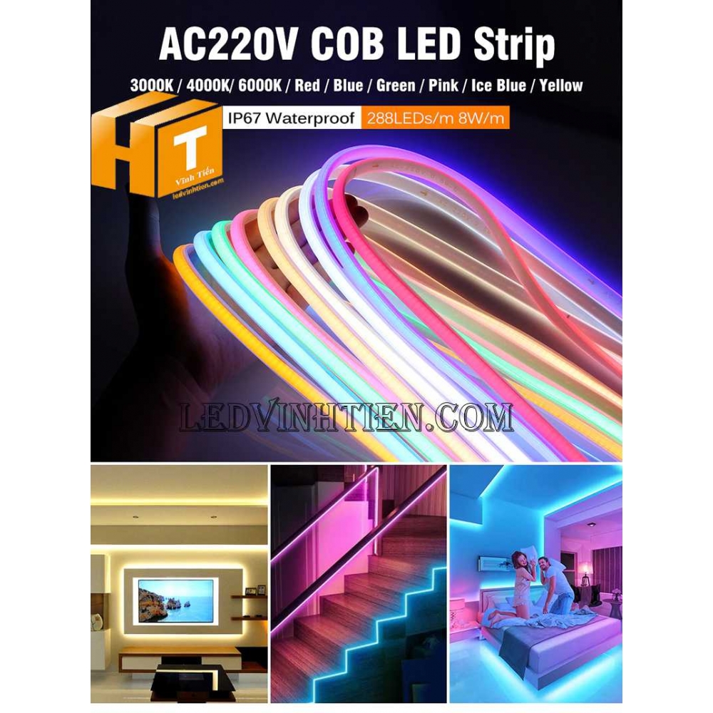 Hình ảnh của led dây COB 220V ánh sáng RGB loại tốt giá rẻ, chính hãng, chất lượng, dùng ngoài trời tại Vĩnh Tiến