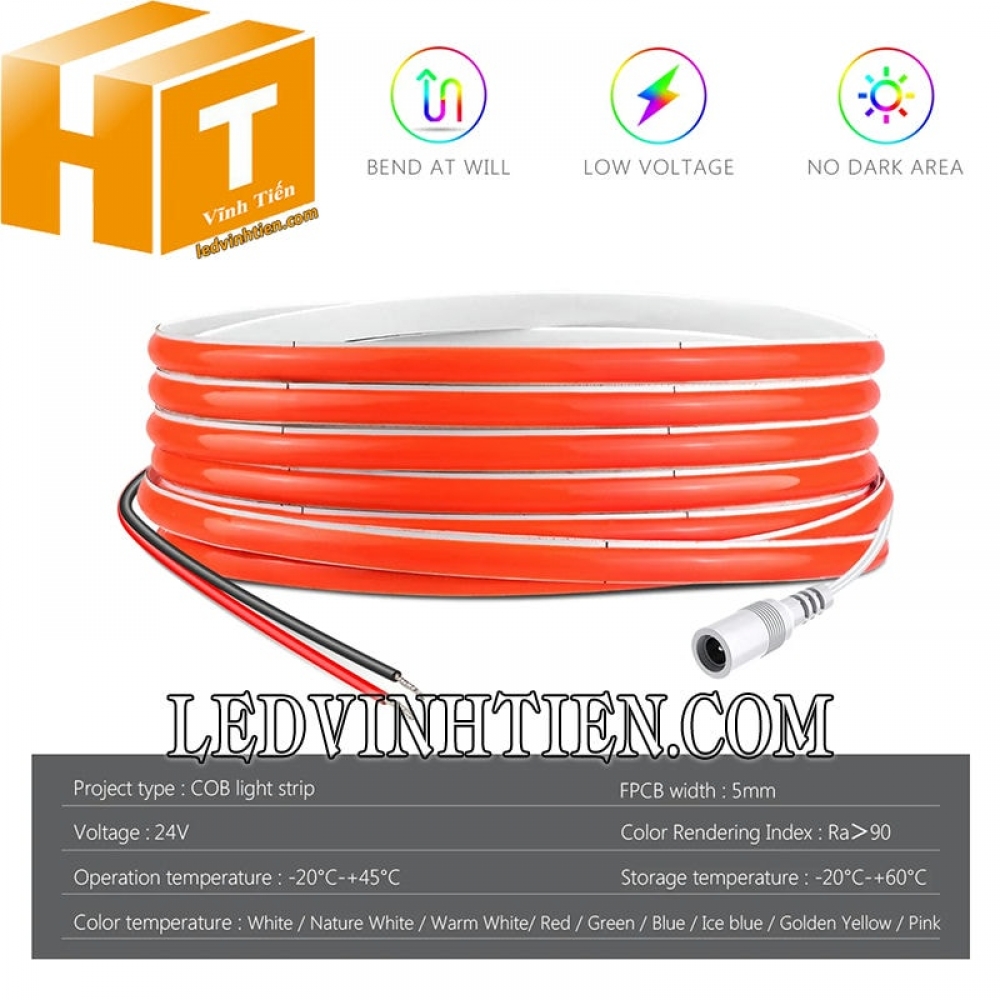Hình ảnh đèn led dây COB 24V màu đỏ được bán tại Vĩnh Tiến