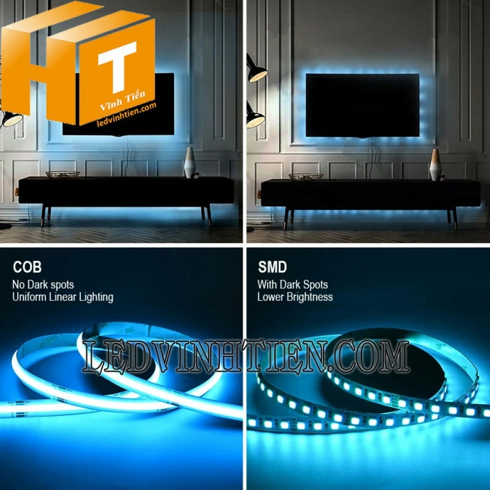 Hình ảnh đèn led dây COB 24V màu xanh dương được bán tại Vĩnh Tiến