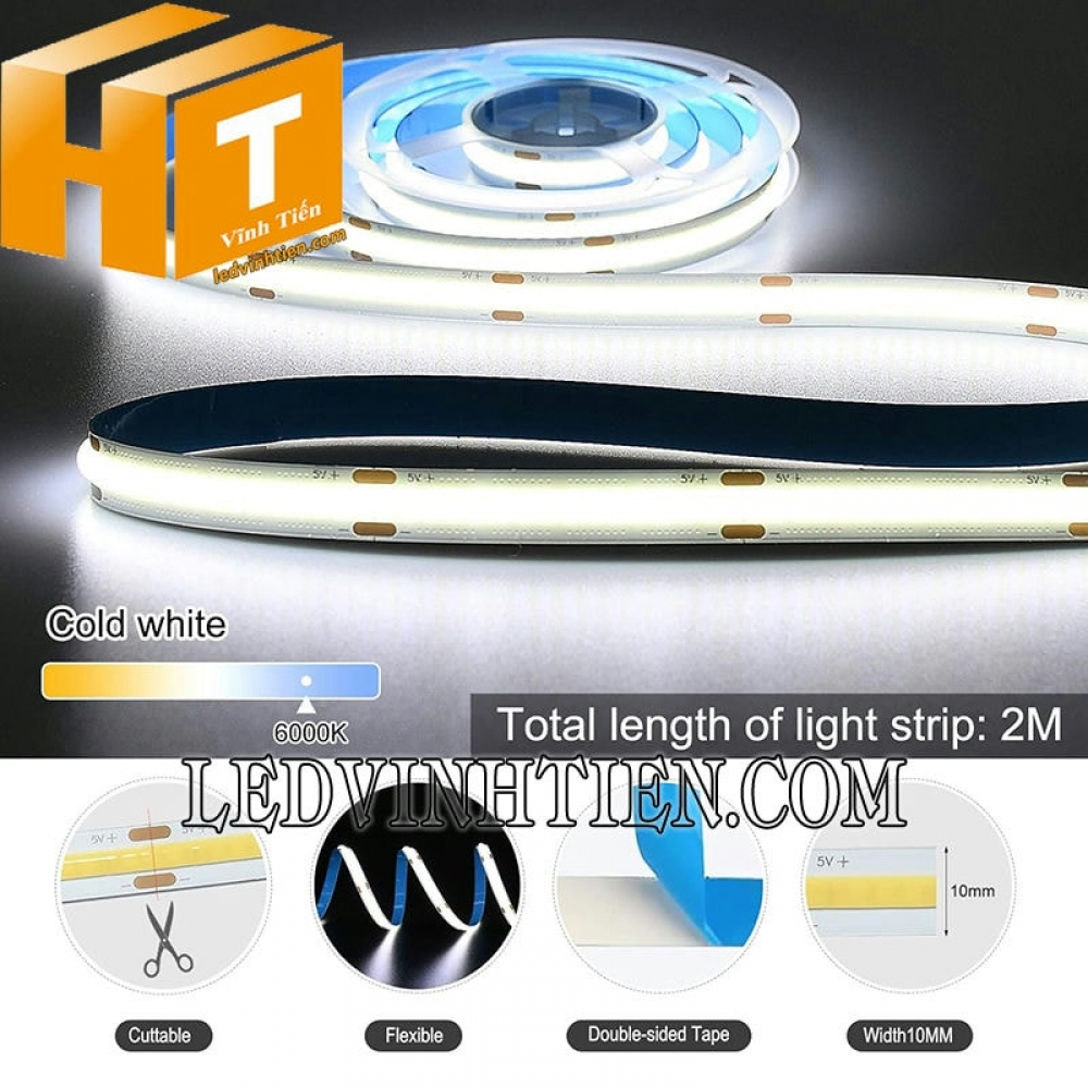 Hình ảnh đèn led dây COB 5V ánh sáng trắng được bán tại Vĩnh Tiến