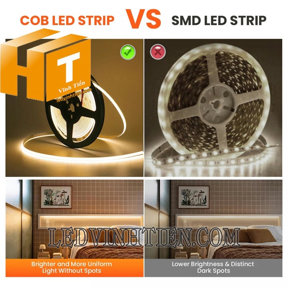 - Mật độ chip led là 320 led/m dày đặc hơn, giúp mang lại hiệu quả phát sáng cao hơn nhờ các điểm phát sáng gần nhau hơn bao giờ hết và tạo ra hiệu suất chiếu sáng đồng đều.