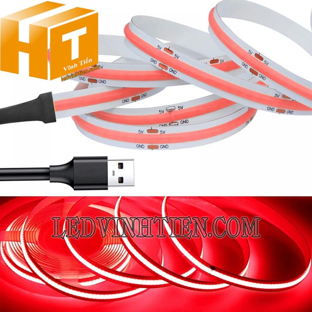 Hình ảnh đèn led dây COB 5V màu đỏ được bán tại Vĩnh Tiến