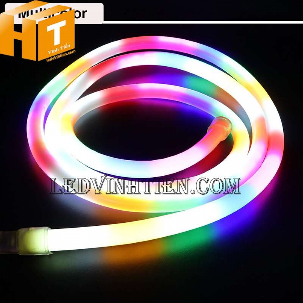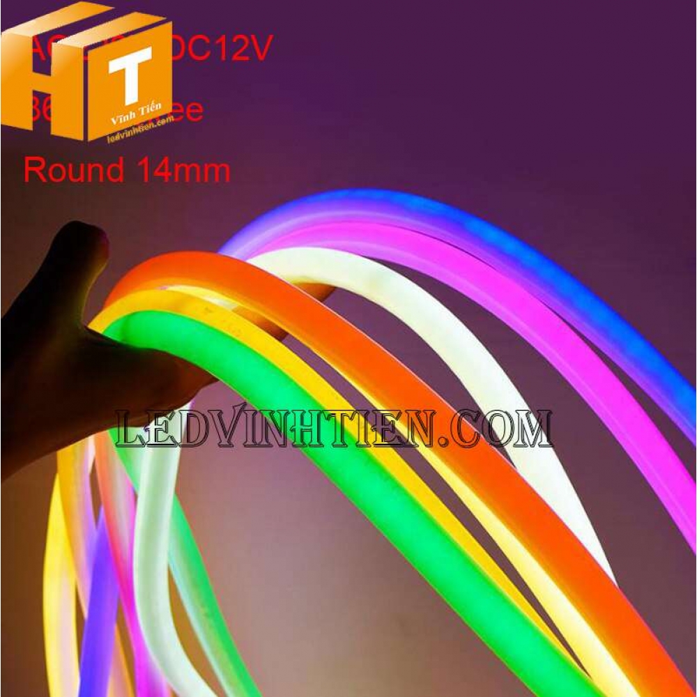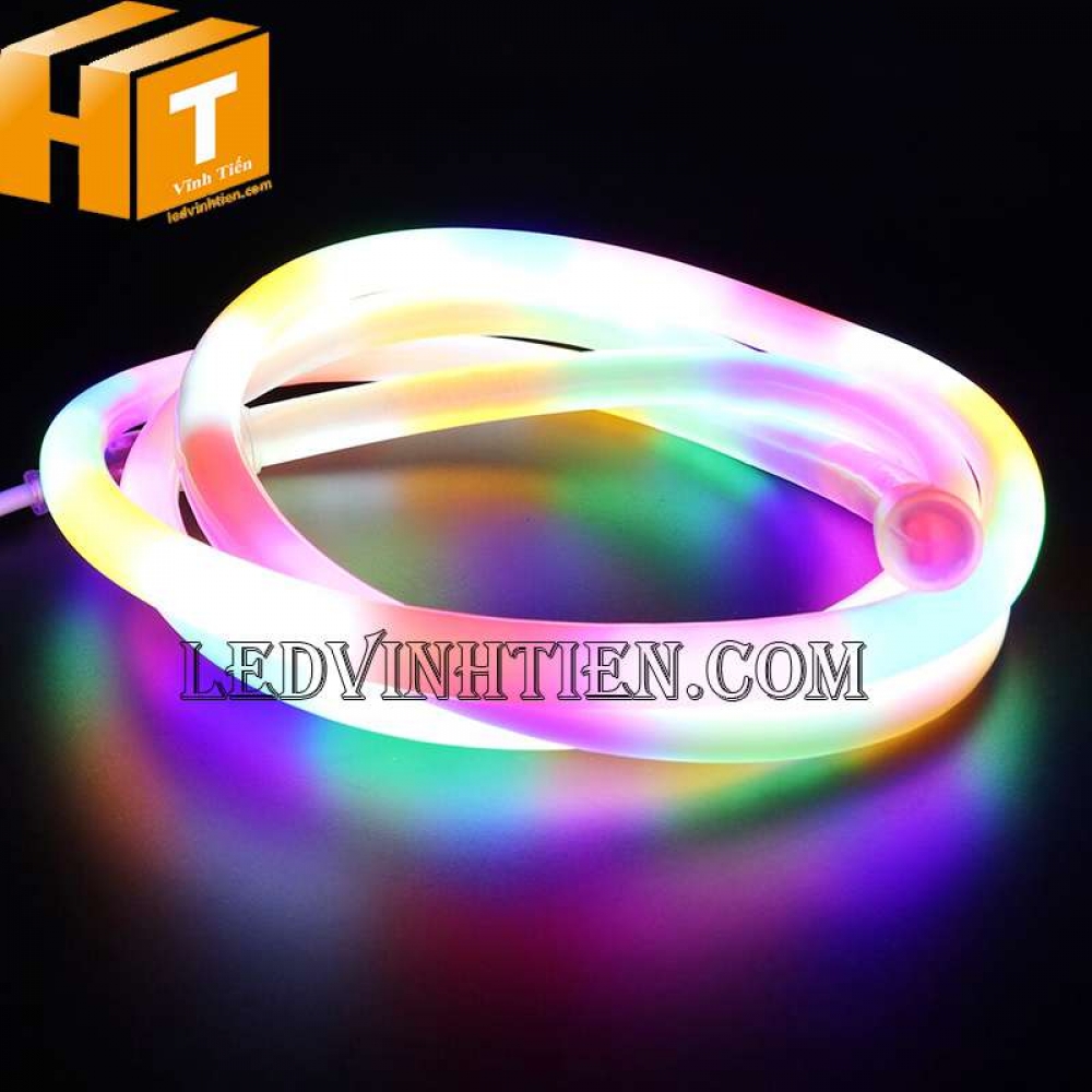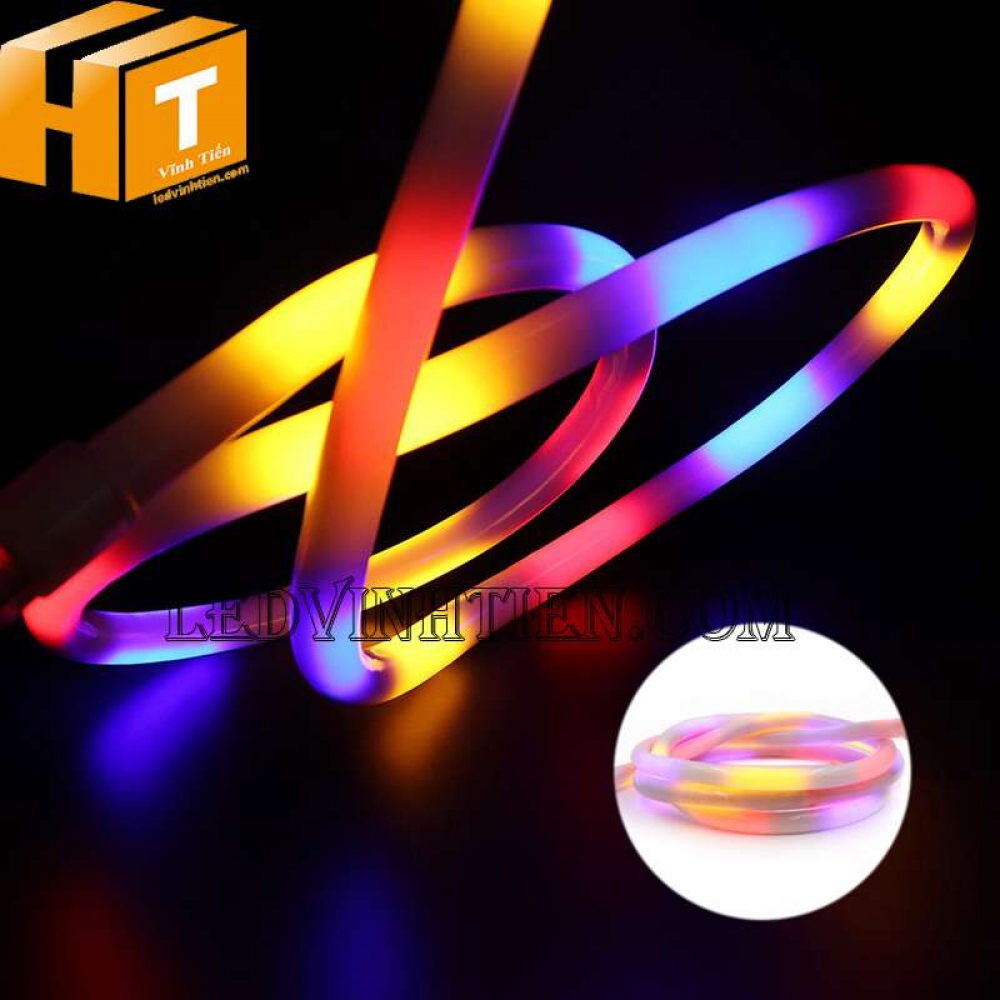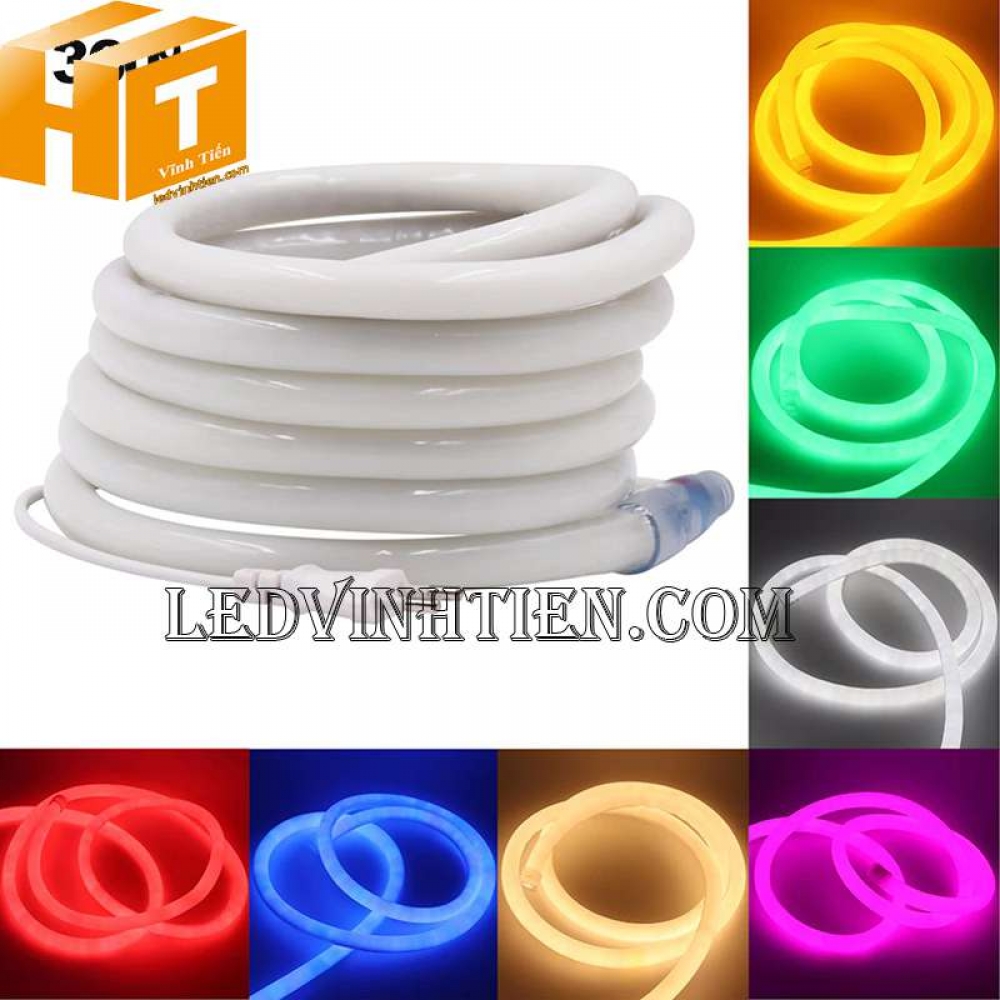 Hình ảnh thật của đèn led dây neon flex 220V ống tròn RGB, bảy màu loại tốt, giá rẻ, siêu sáng, dùng chiếu sáng ngoài trời, chính hãng ledvinhtien.com